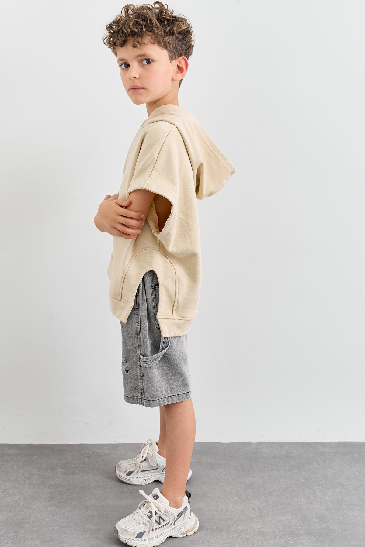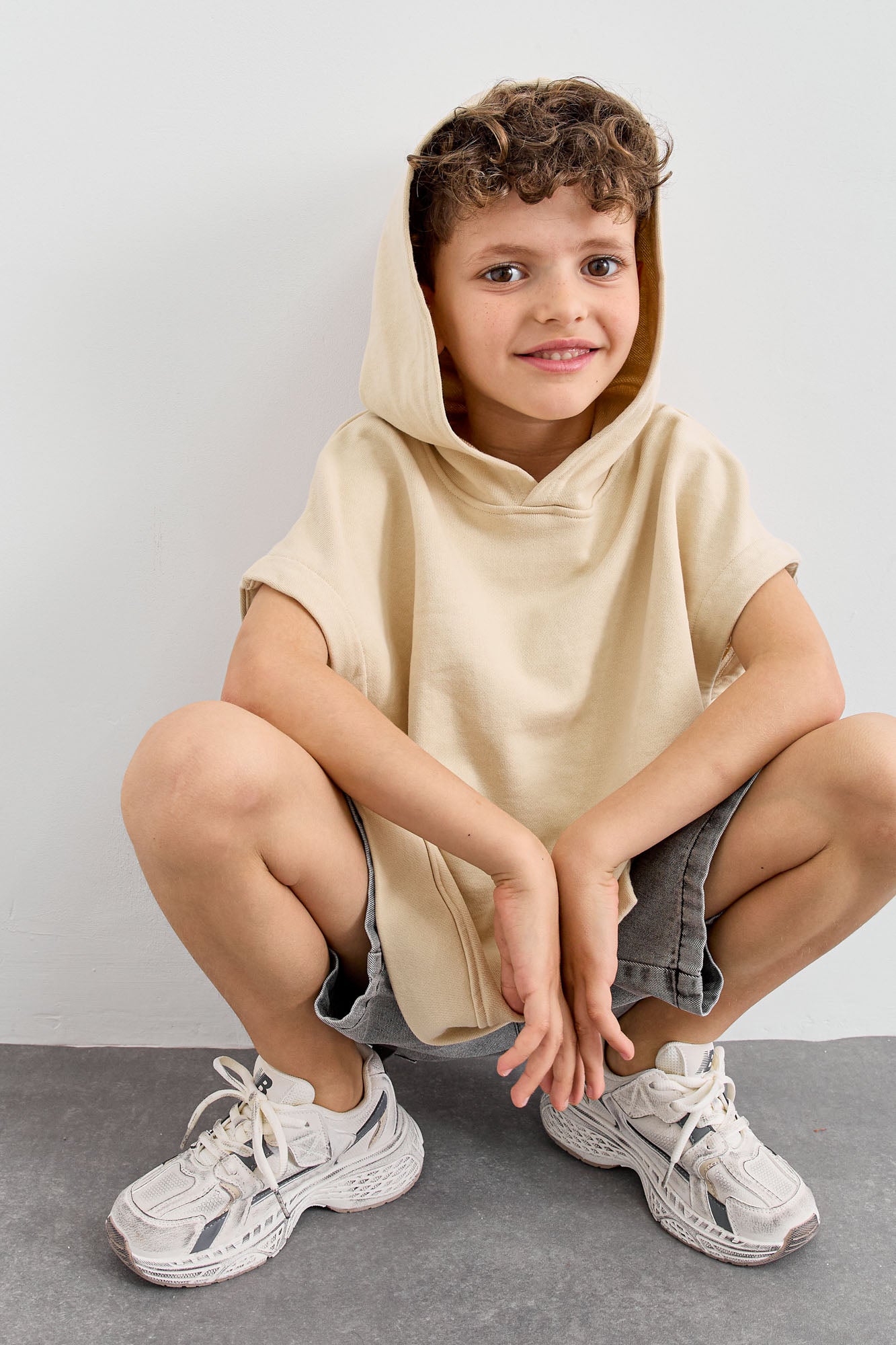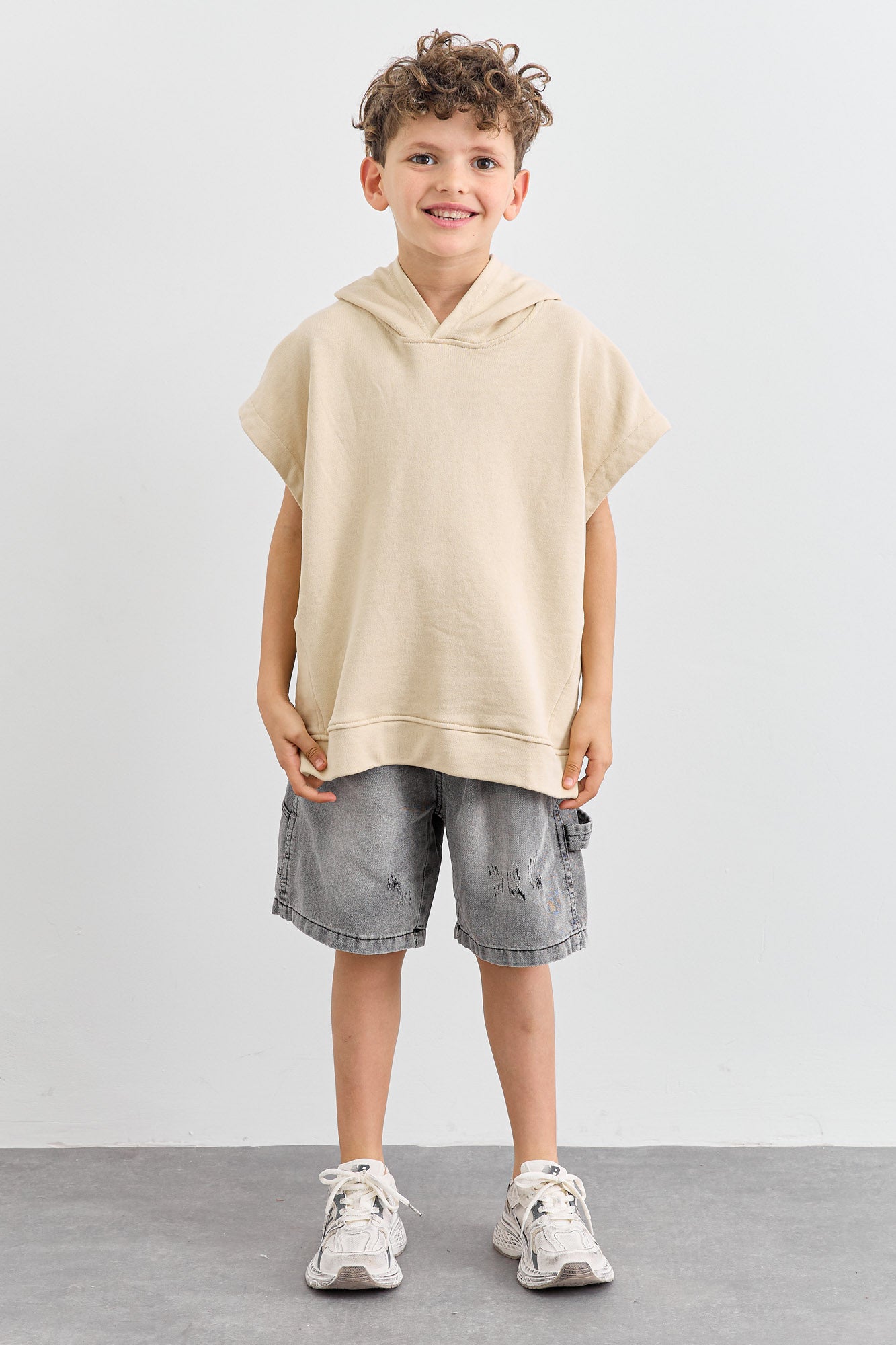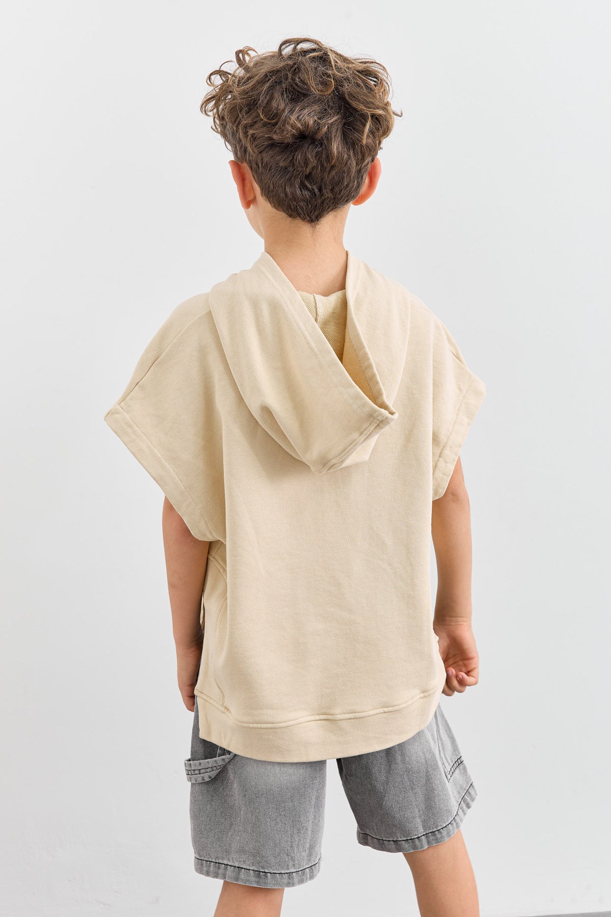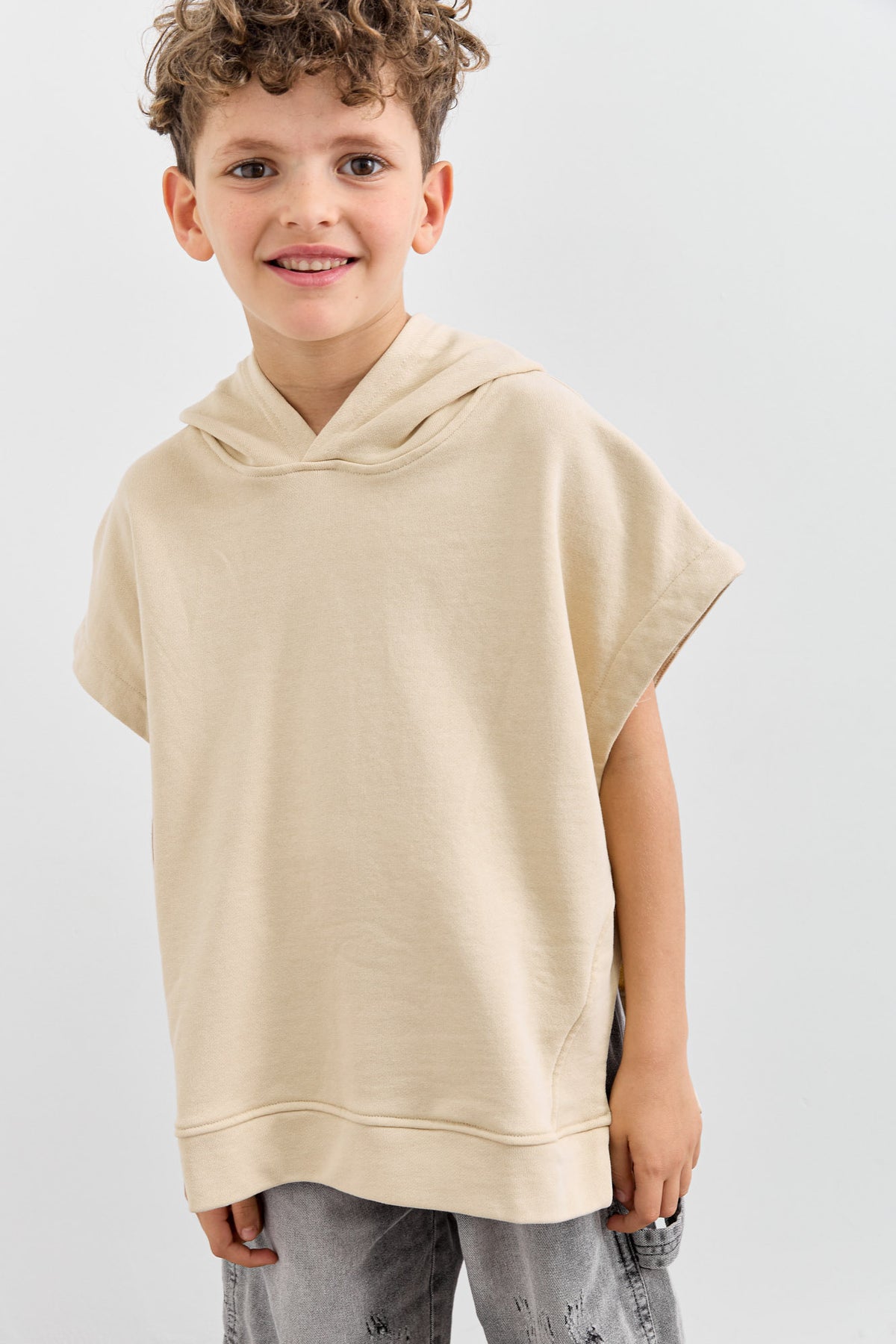 סוויטשירט ללא שרוול בשילוב קפוצ'ון | בז'