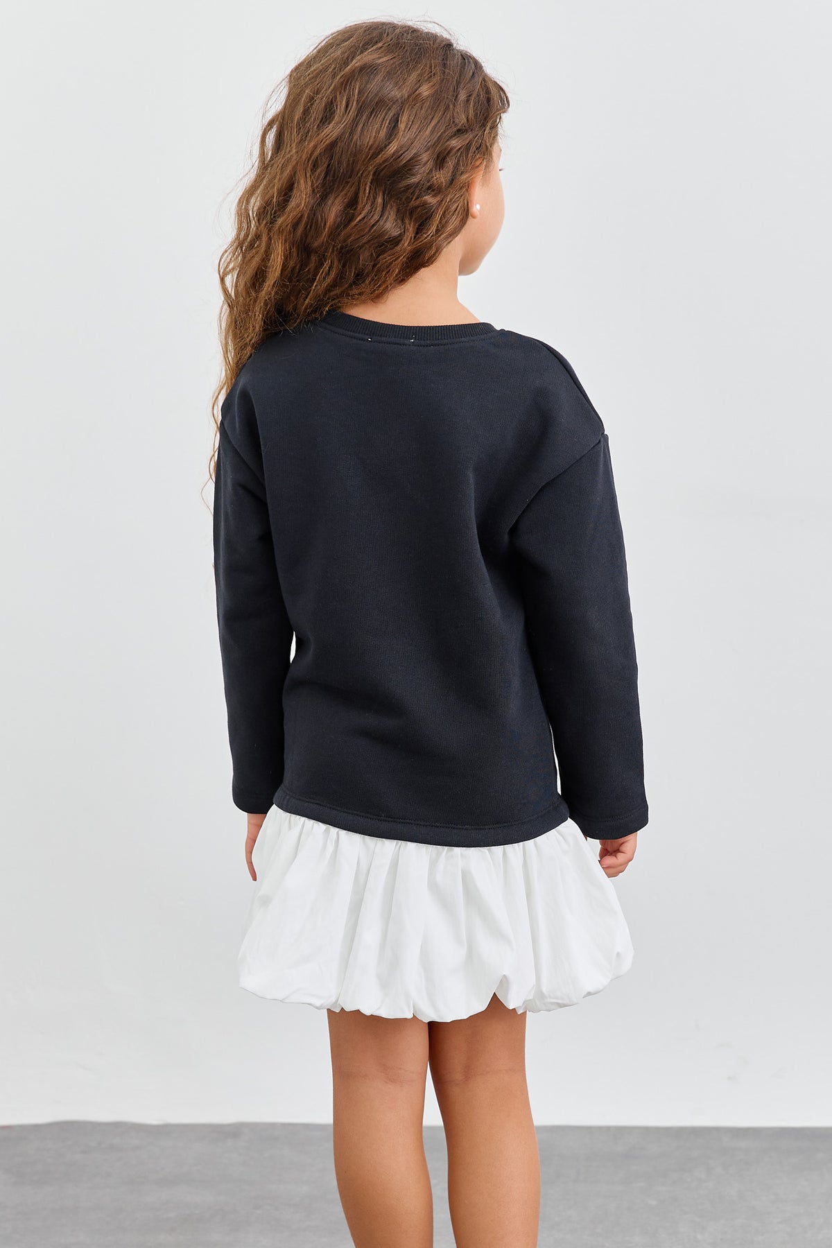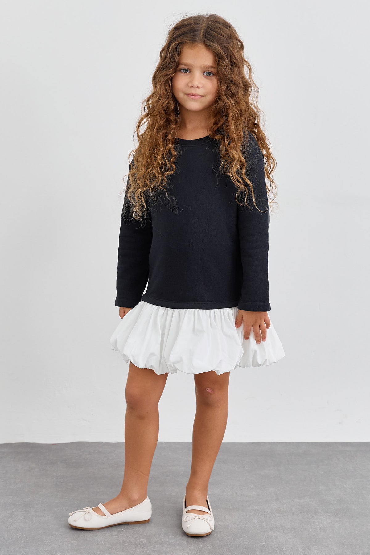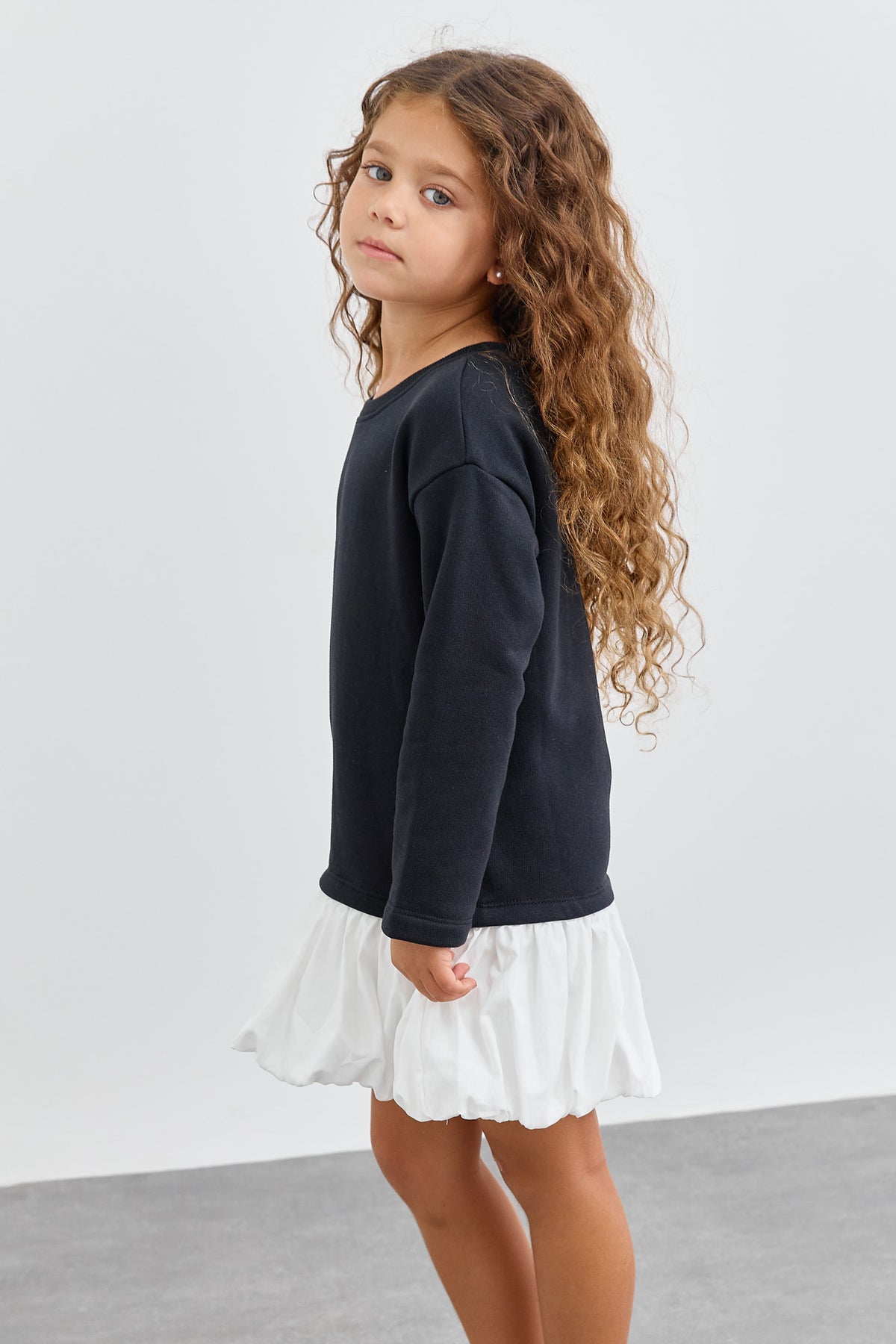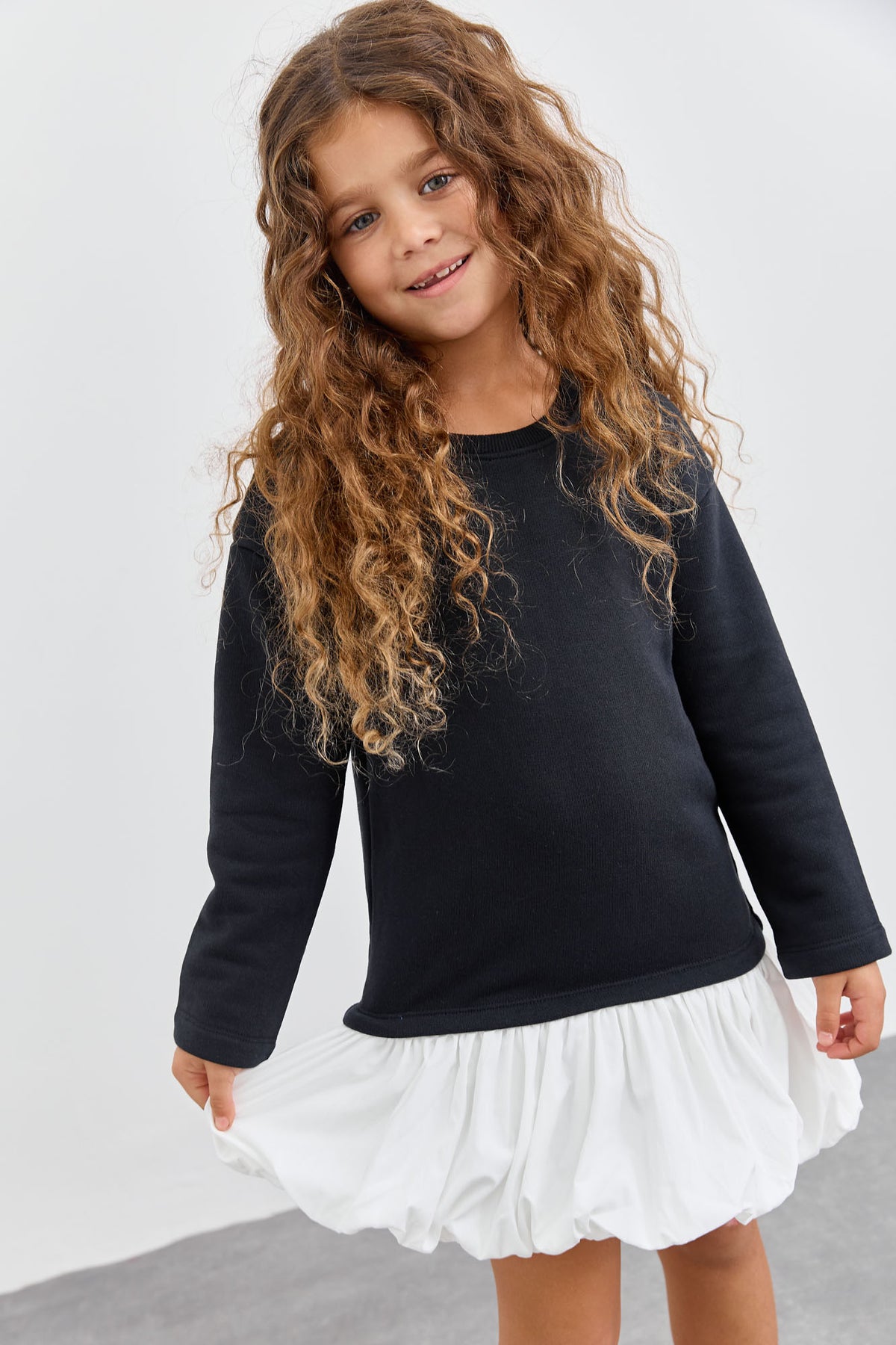 שמלת פרנץ' טרי בד משולב גזרת אוברסייז | שחור