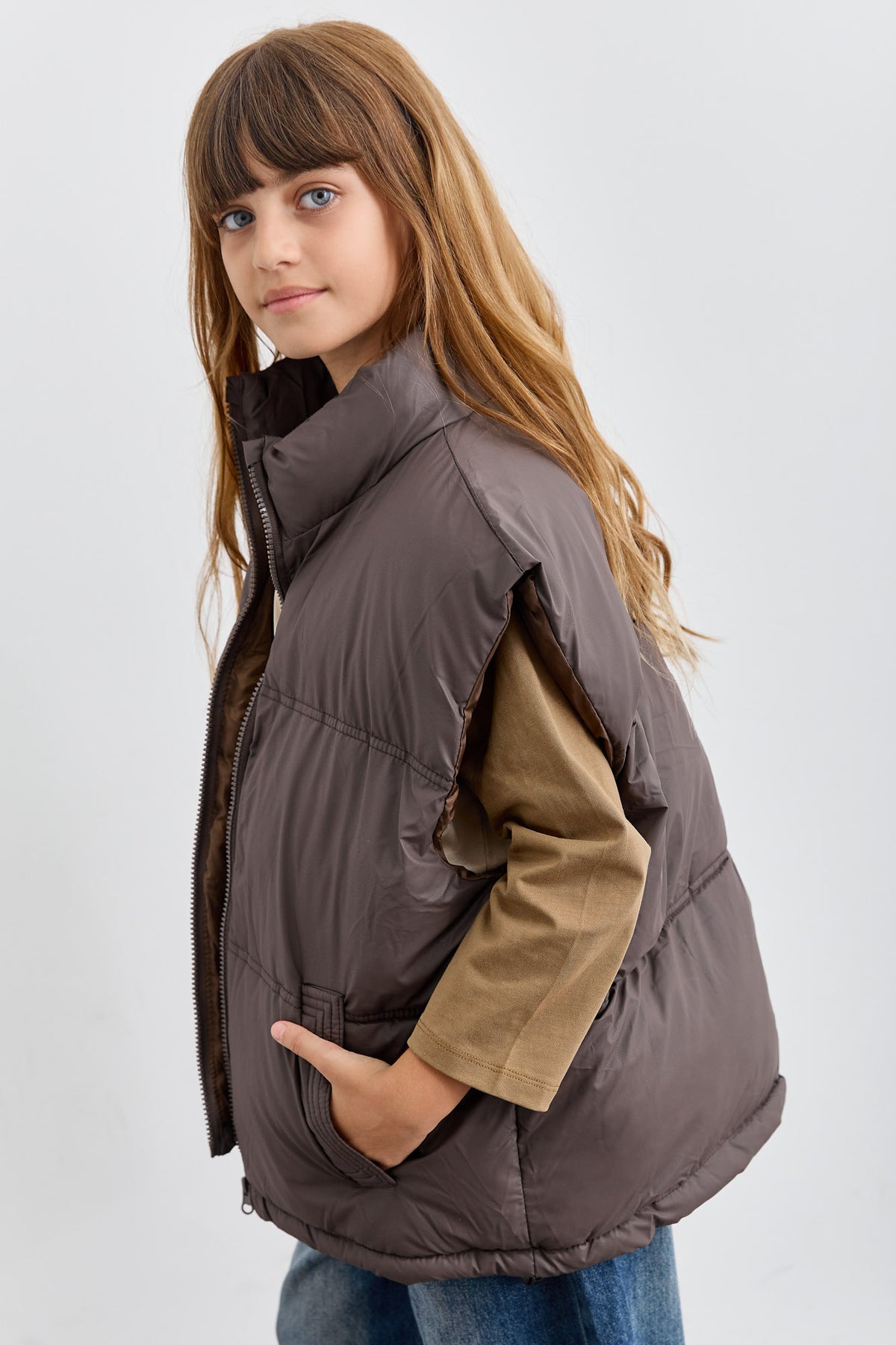 ווסט פוף אוברסייז במיוחד מבד ניילון עם סגירת רוכסן
