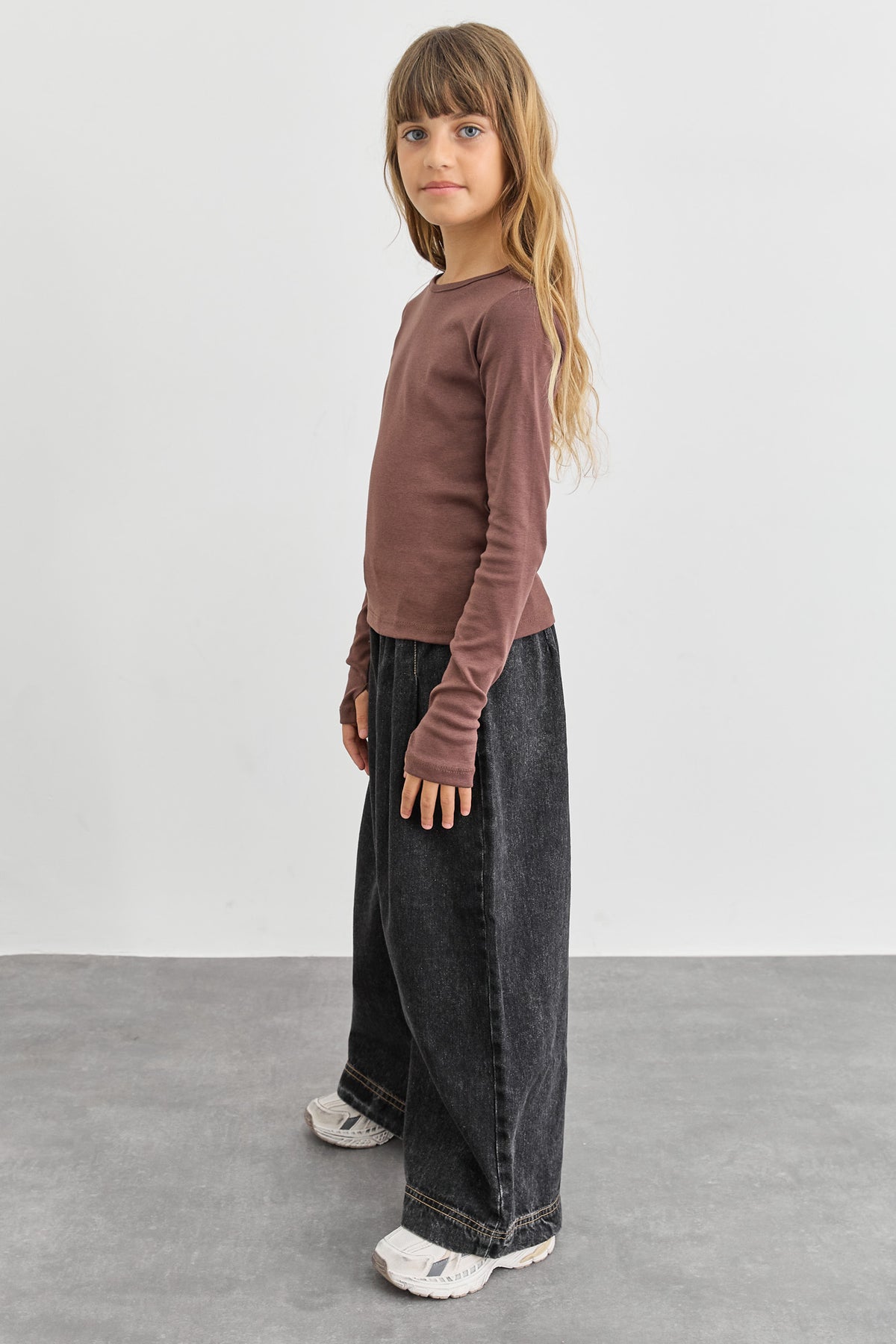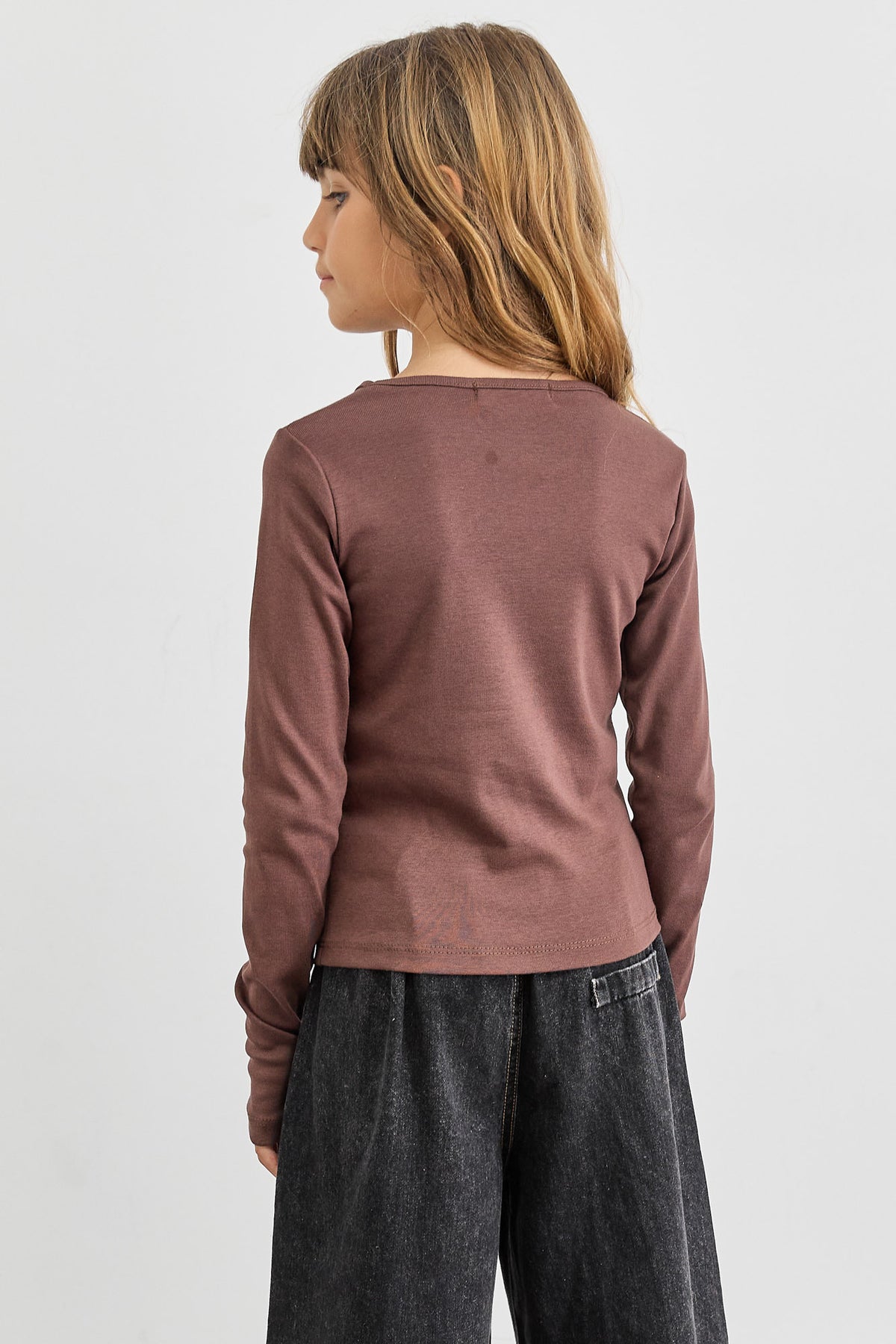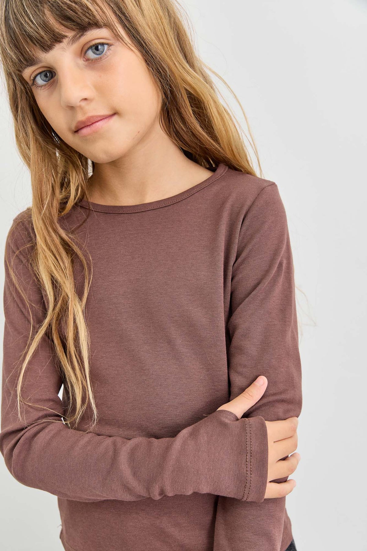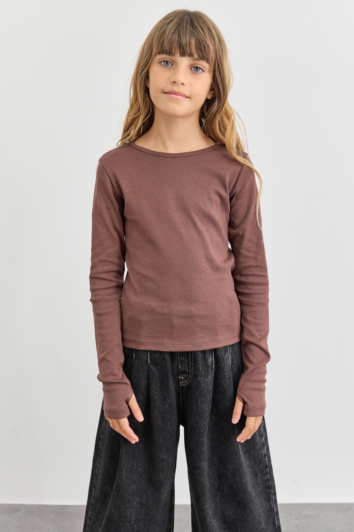 חולצת בייסיק עם שרוולים ארוכים, צווארון ניקי ושרוולי כפפה