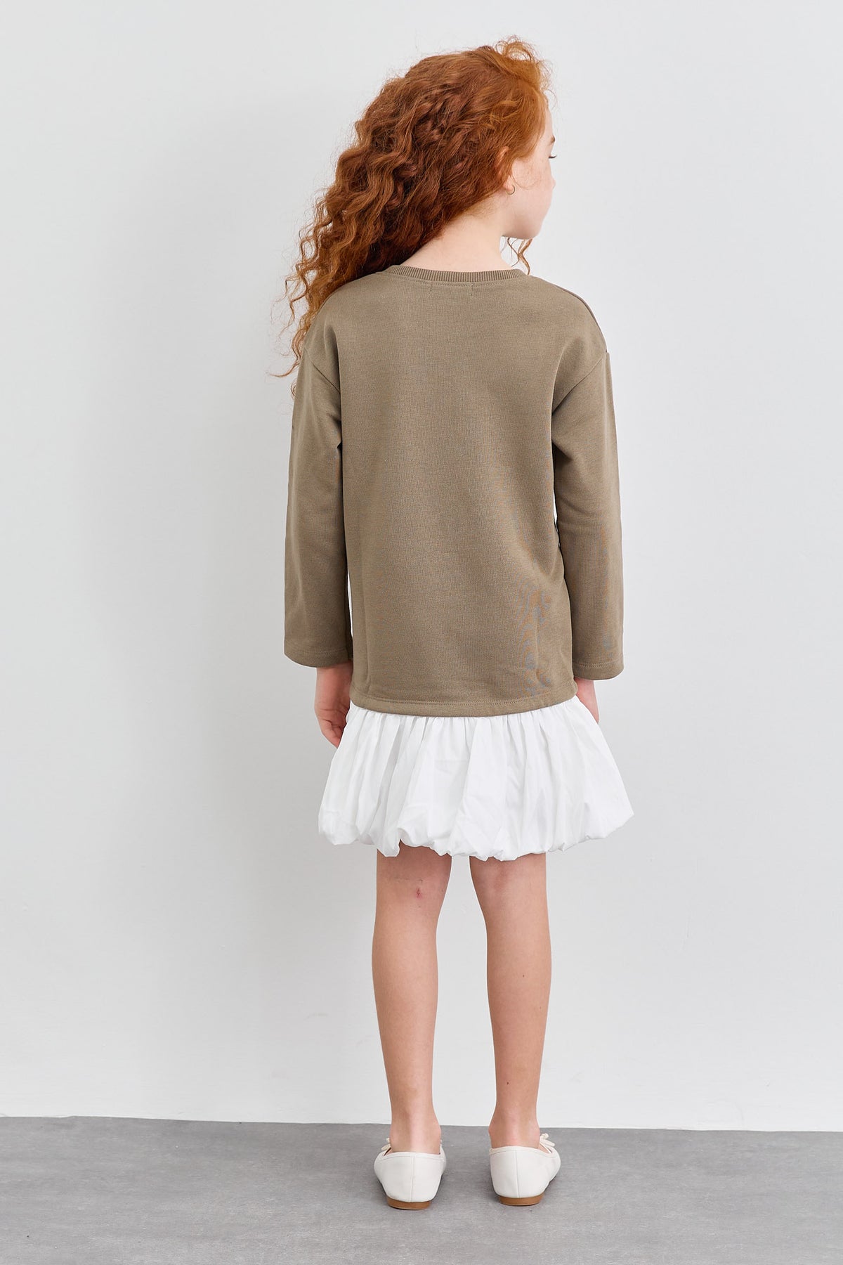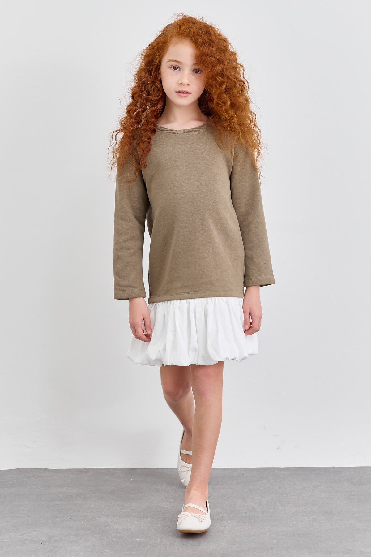 שמלת פרנץ' טרי בד משולב גזרת אוברסייז | חום
