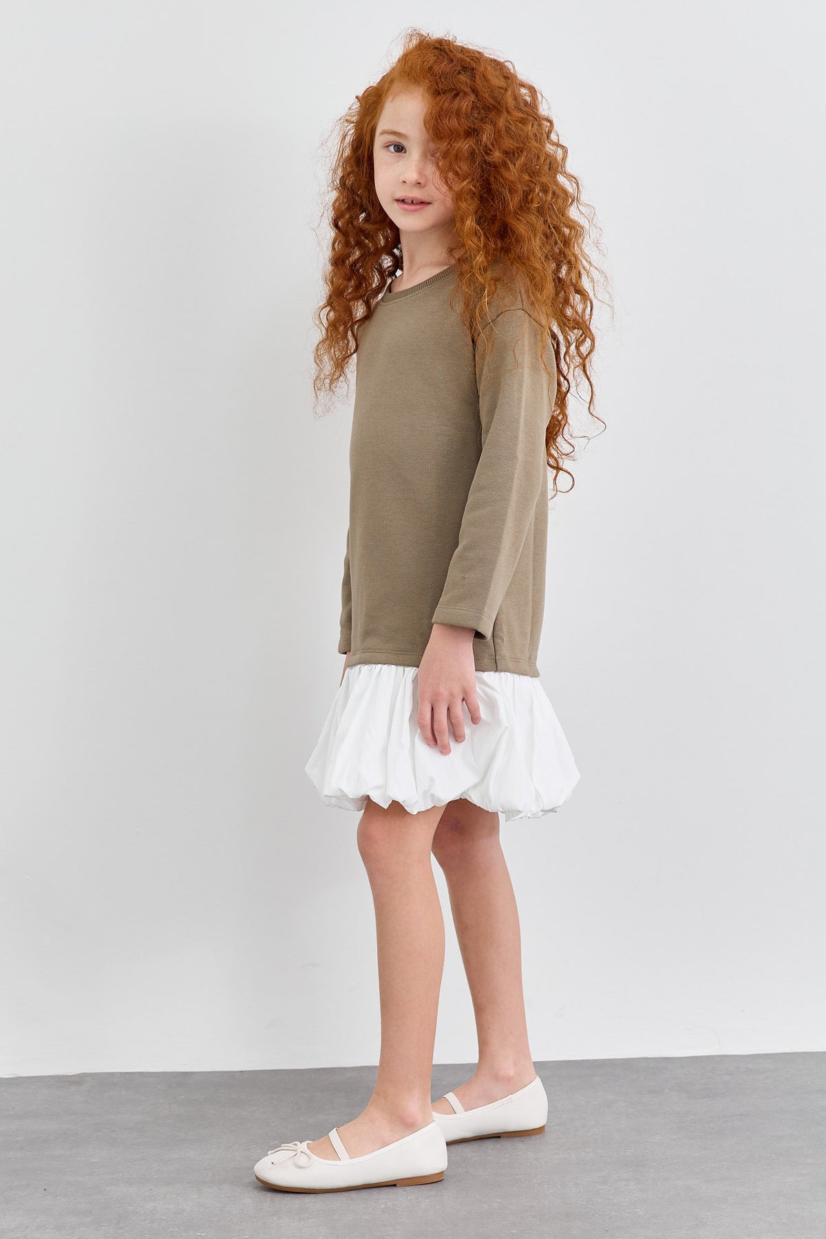 שמלת אוברסייז שרוולים ארוכים עם שילוב מלמלה מבד כותנה