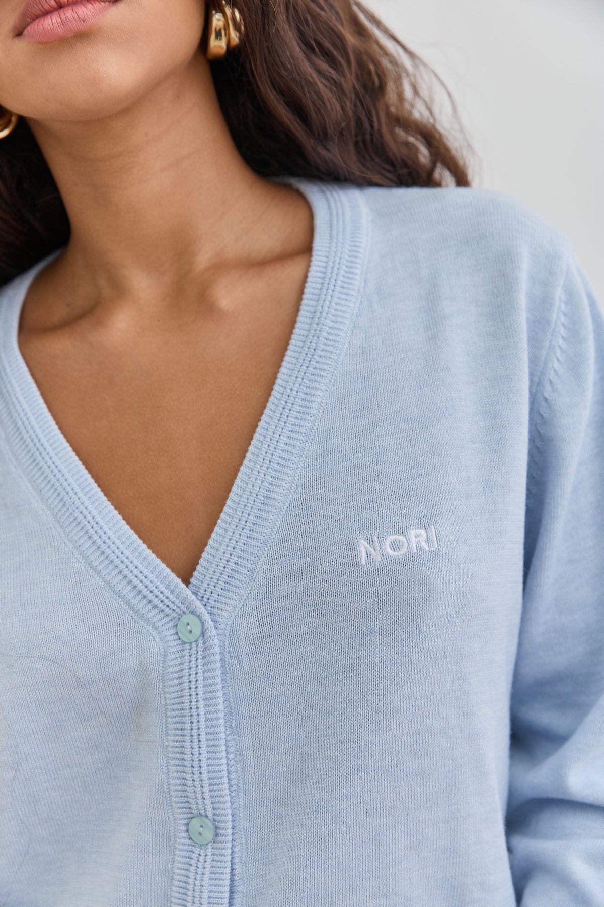 קרדיגן כפתורים בשילוב לוגו ומחשוף וי