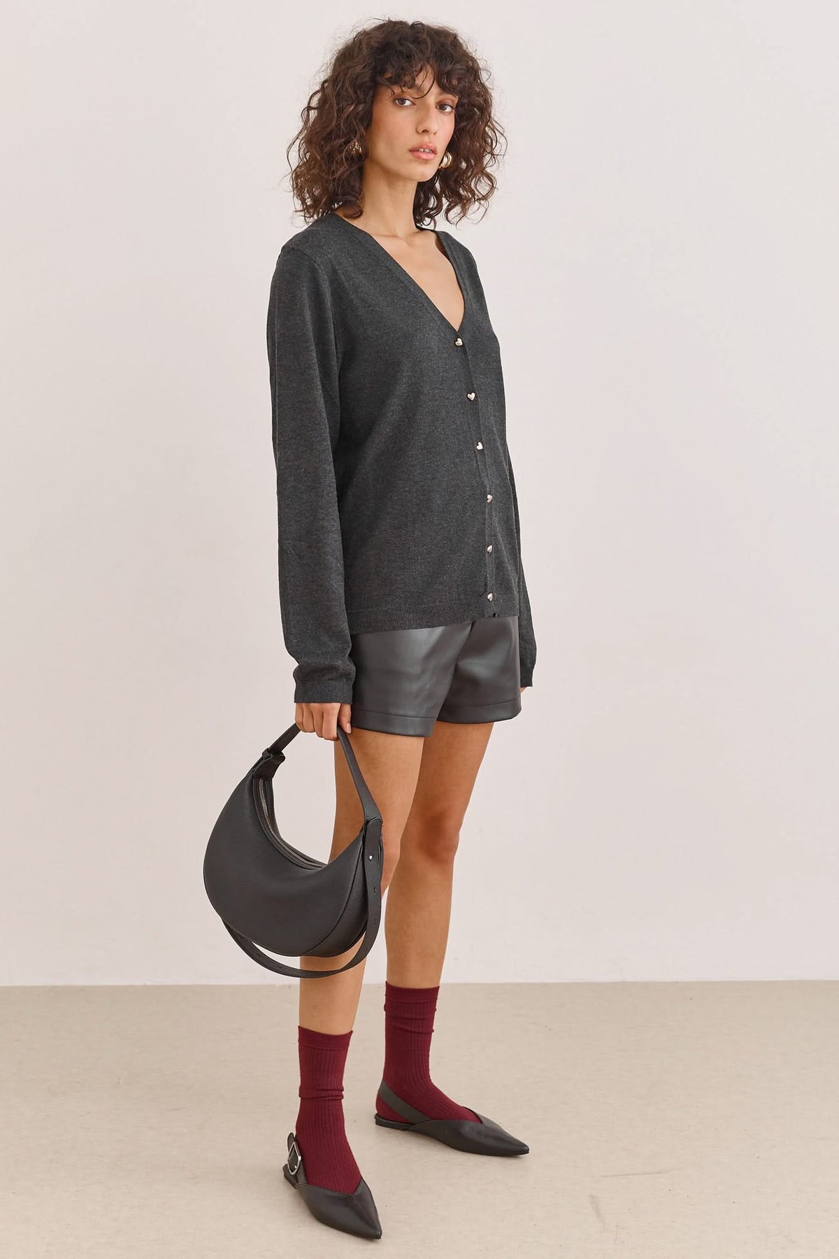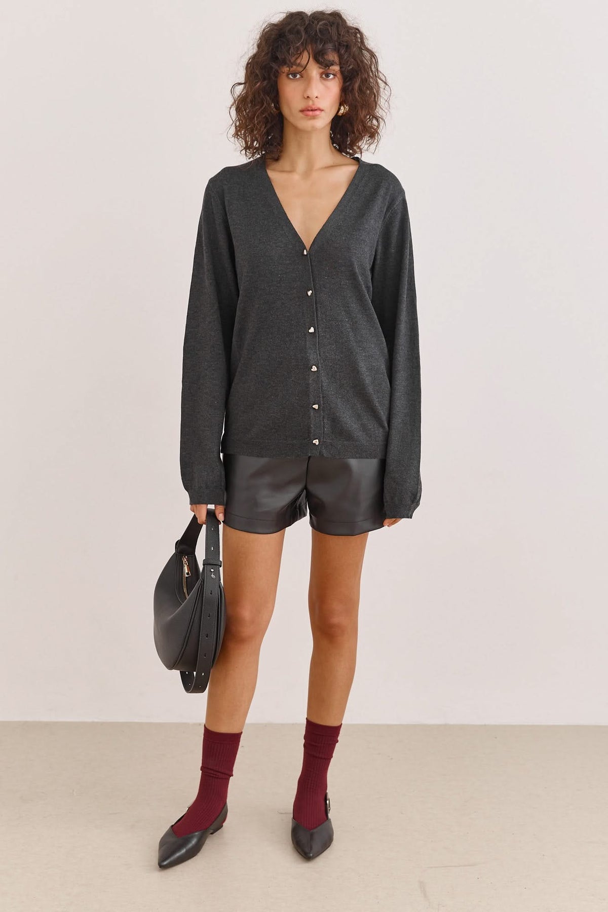 קרדיגן סריג הארי כפתורי לב | אפור