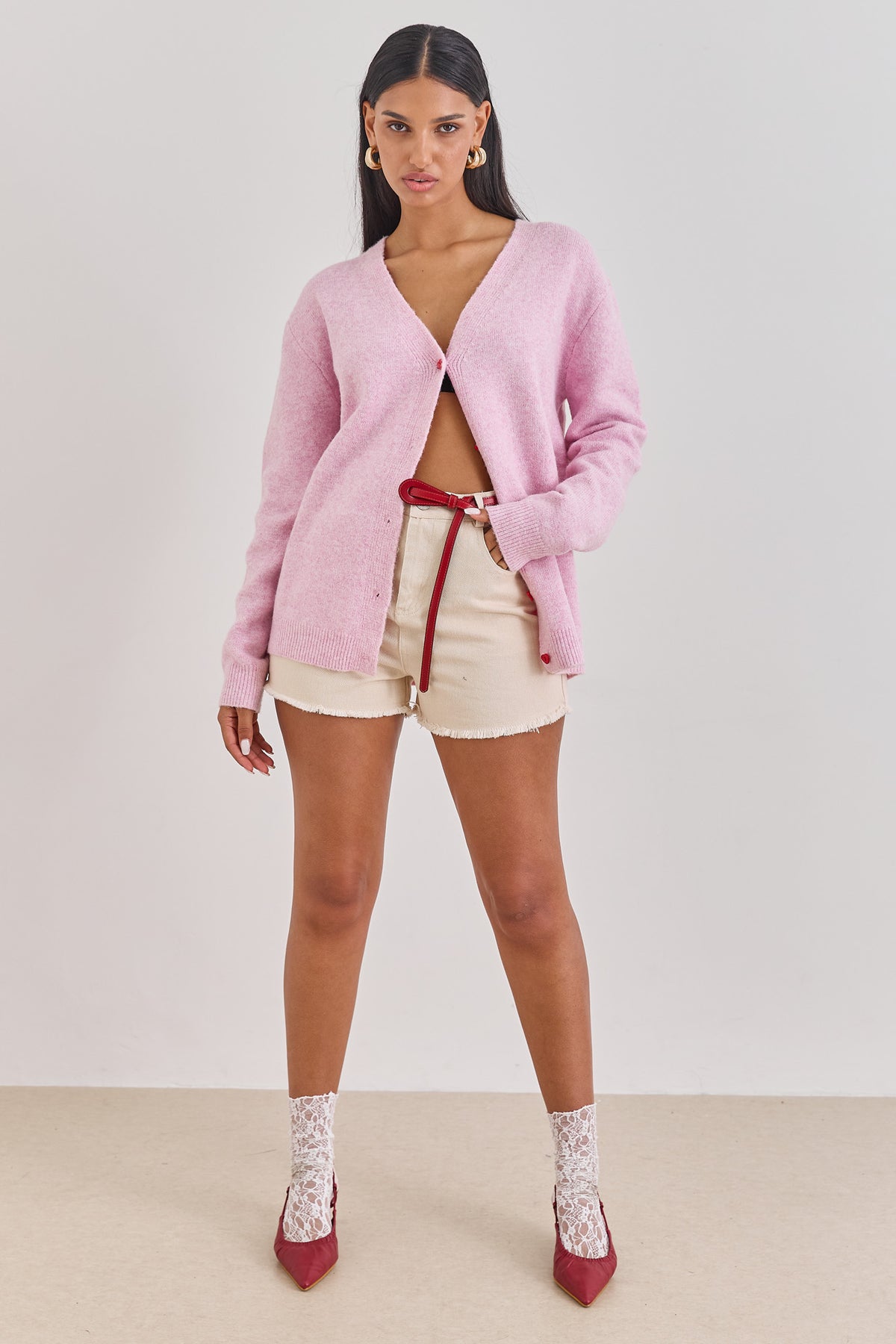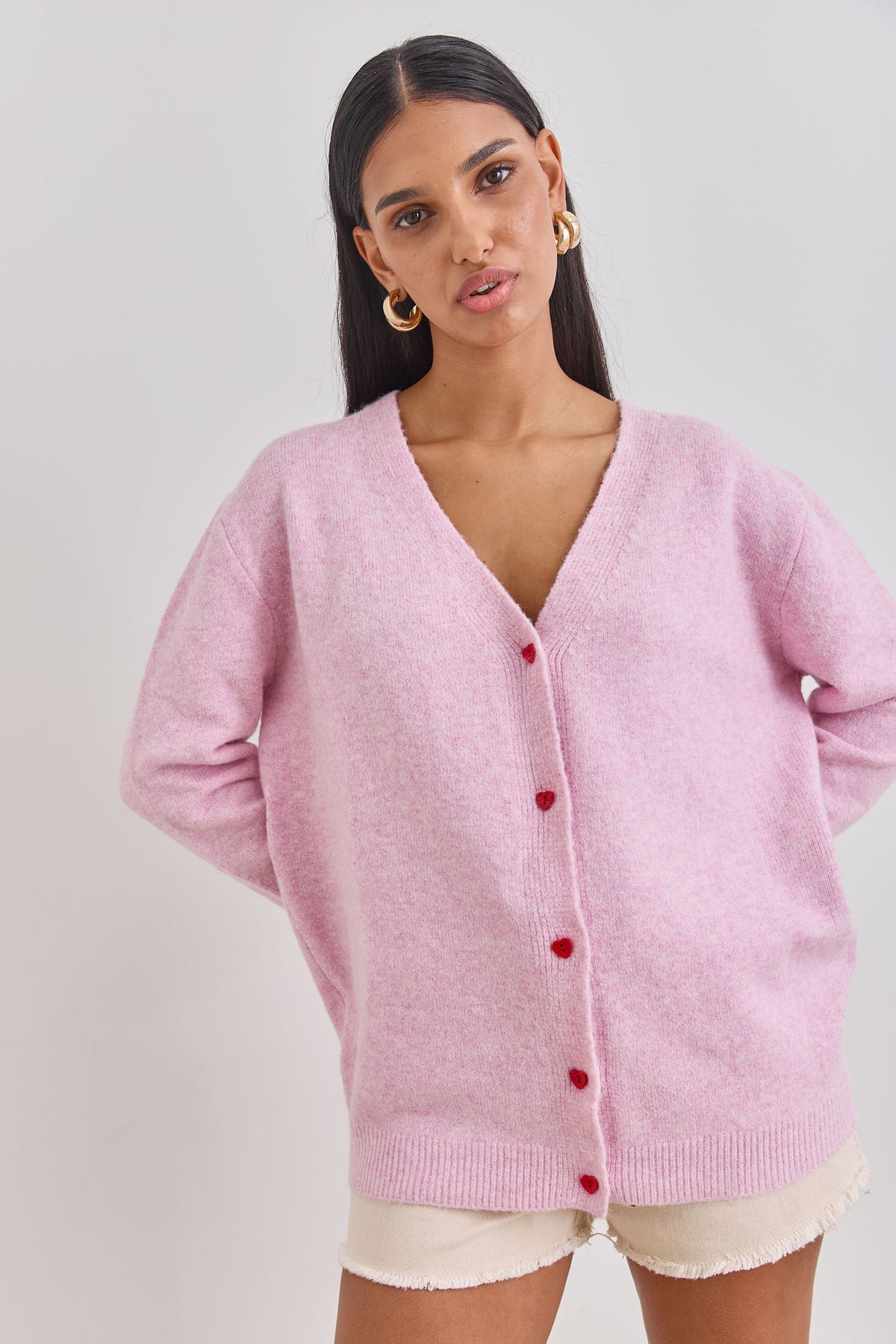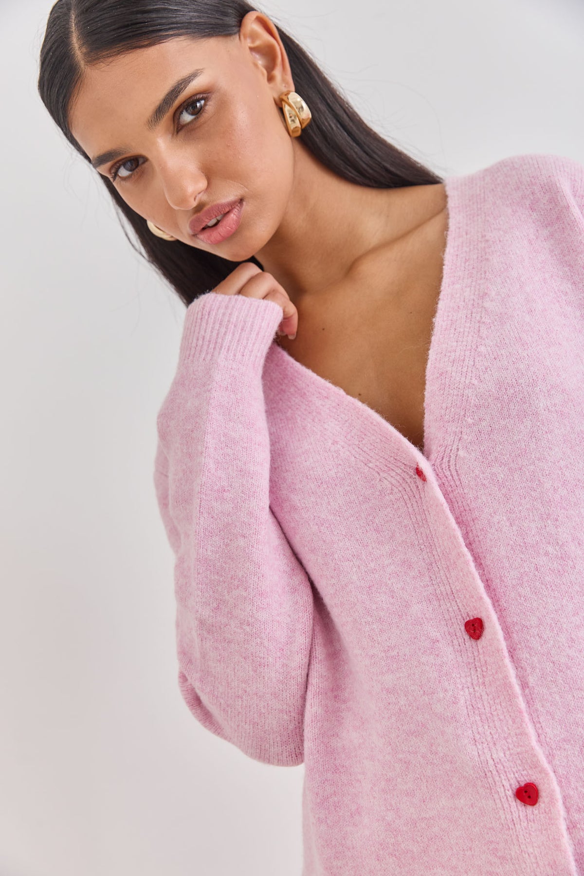 קרדיגן מבד סריג בגזרת אוברסייז בשילוב כפתורי לב
