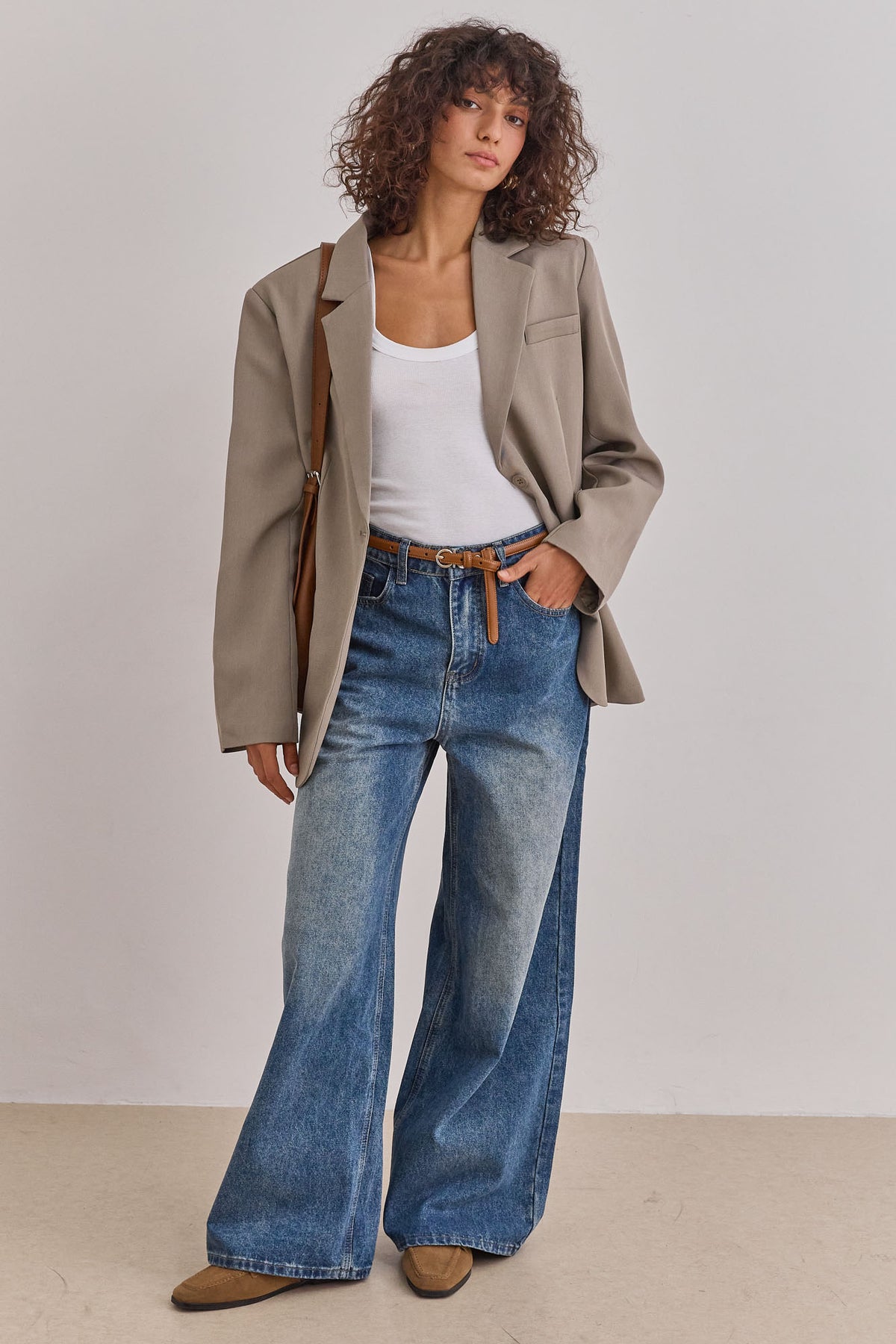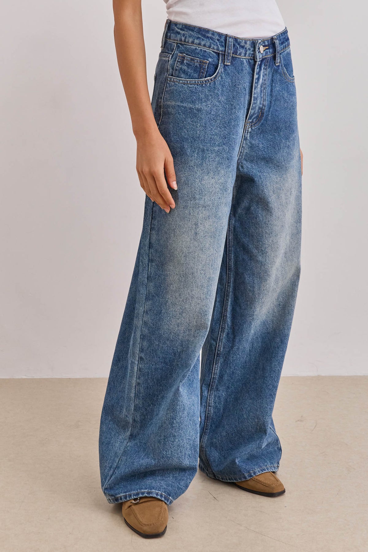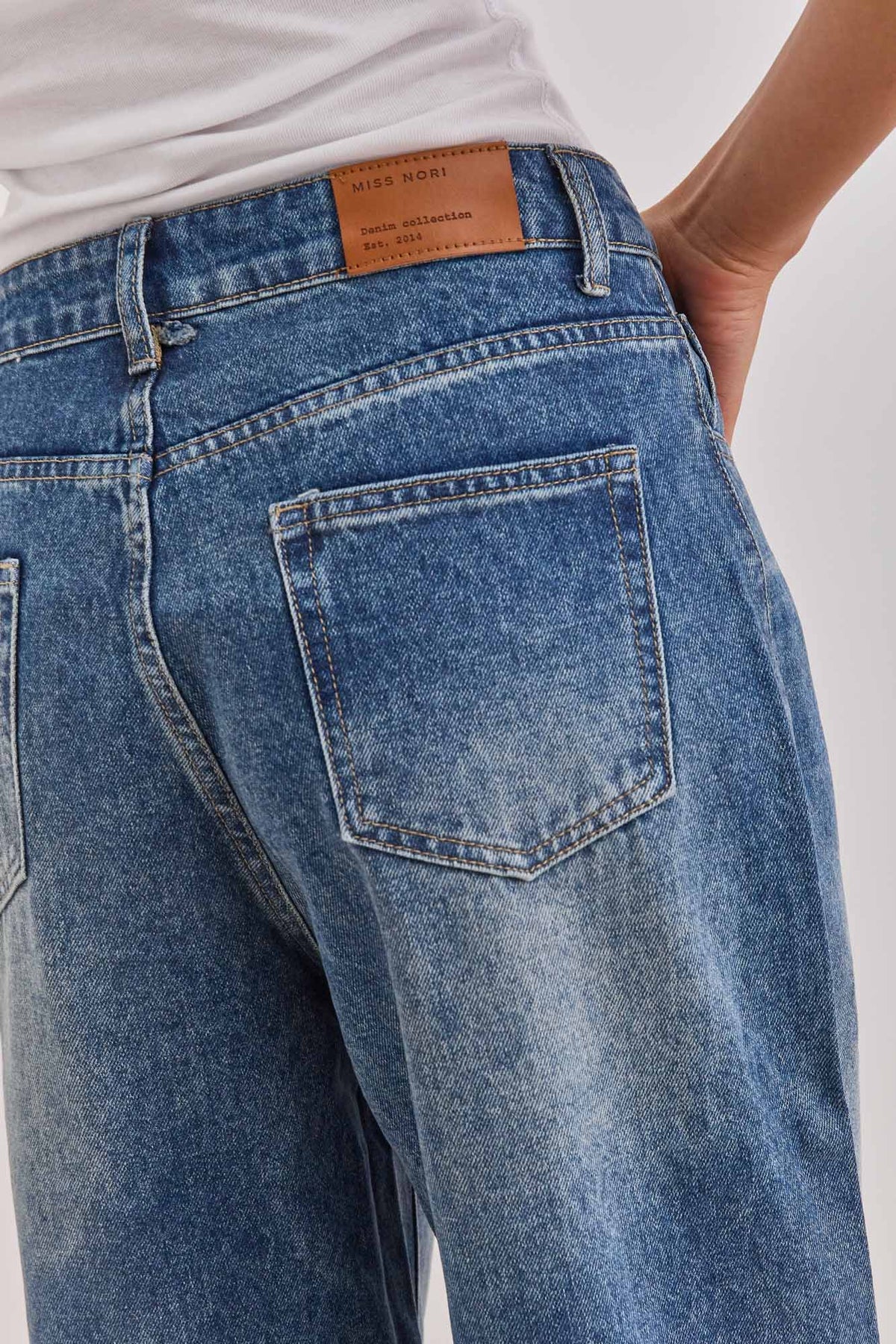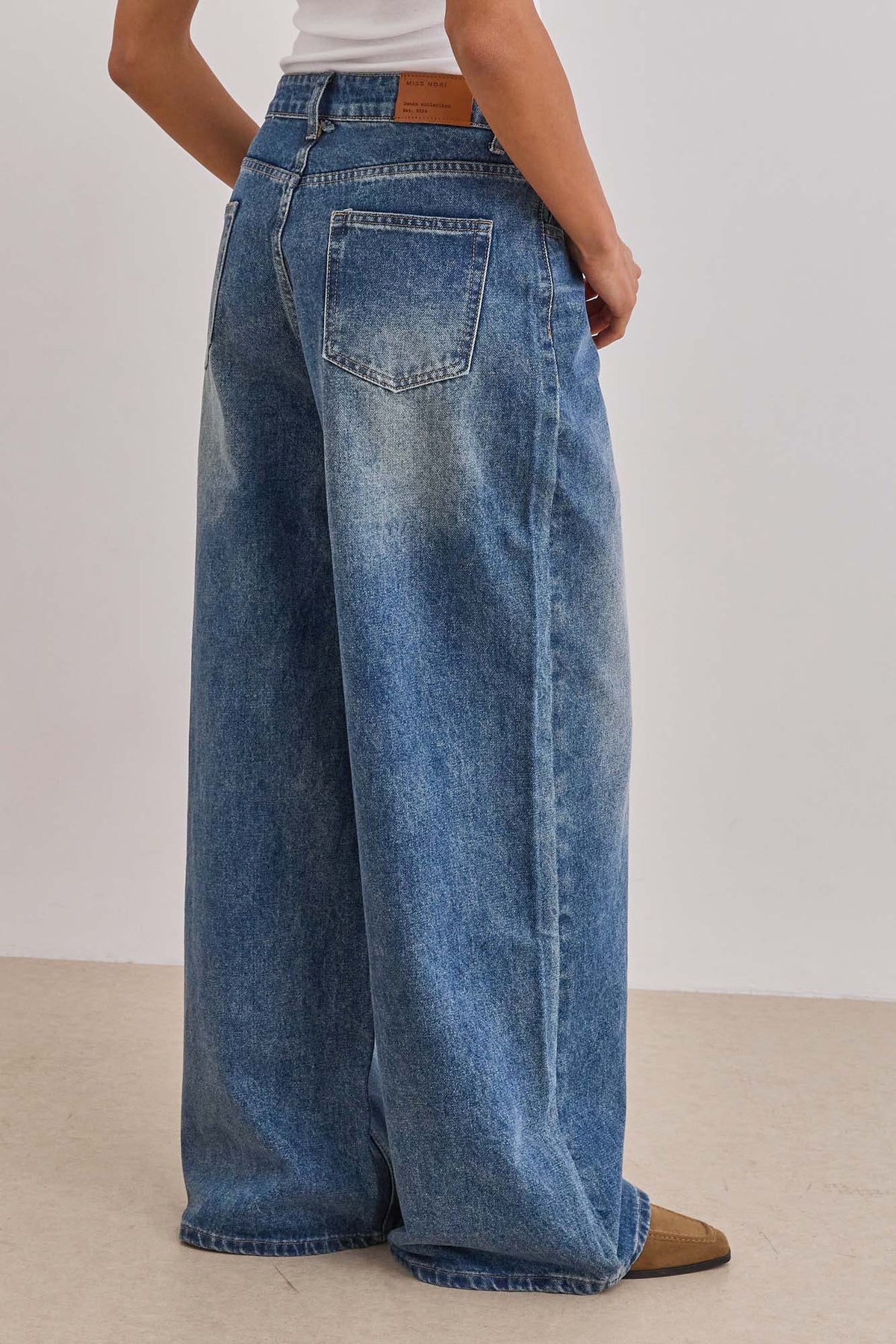 מכנסי דנים בגזרת אוברסייז בשילוב כיסים