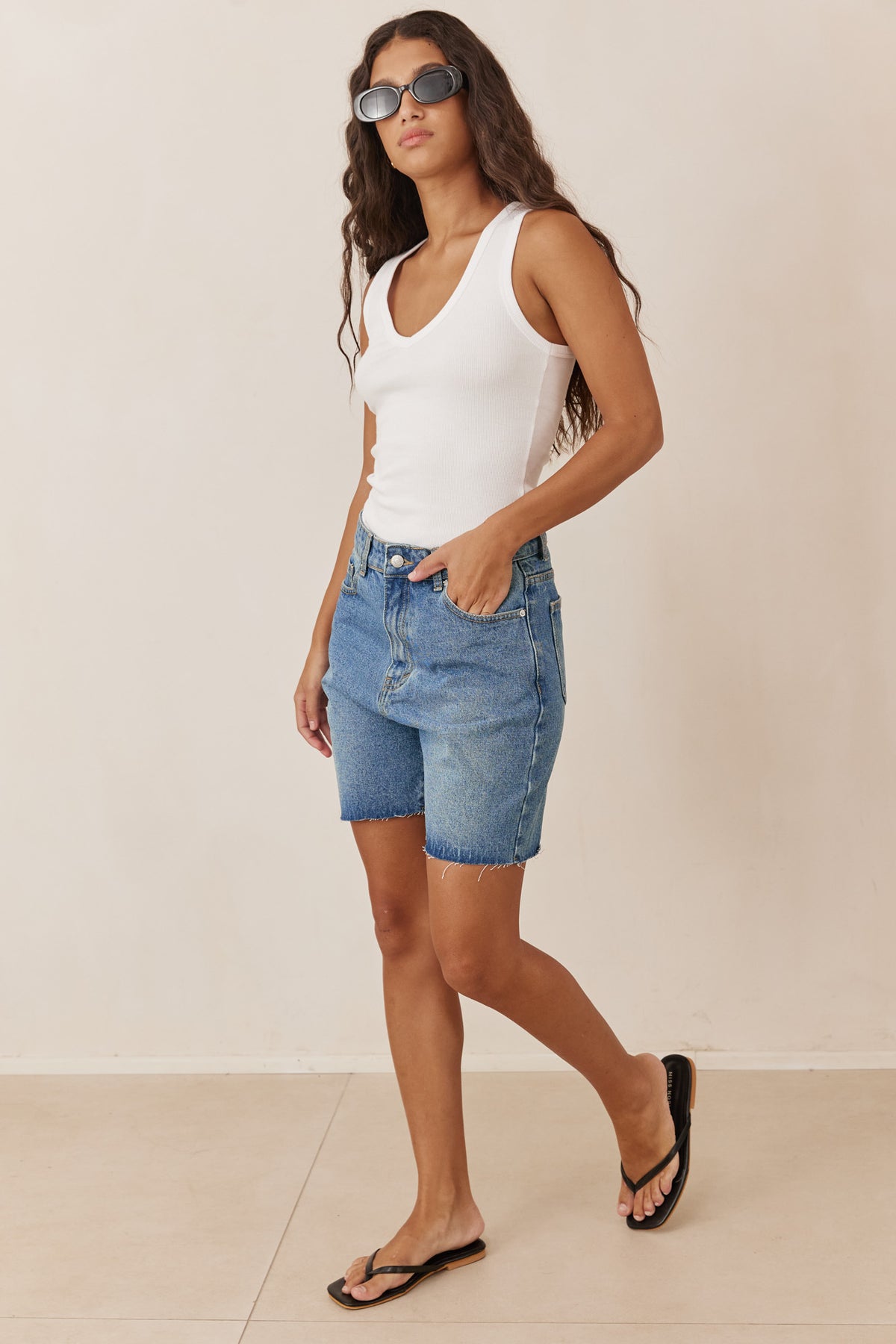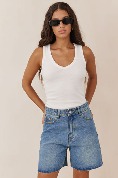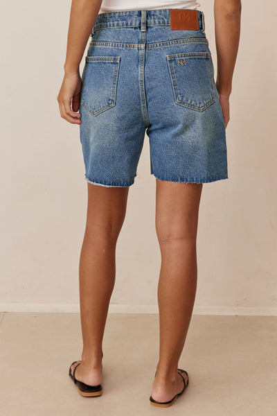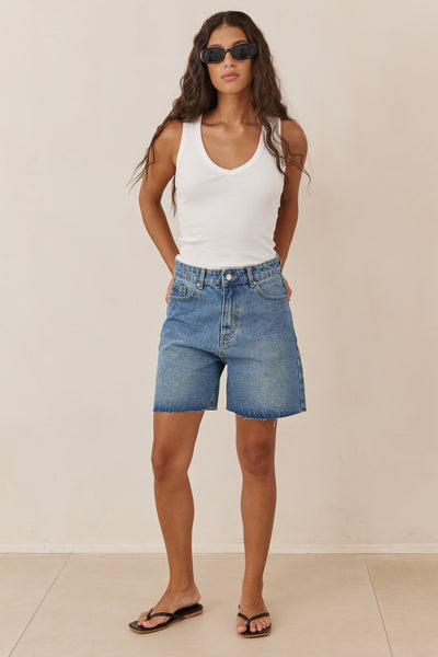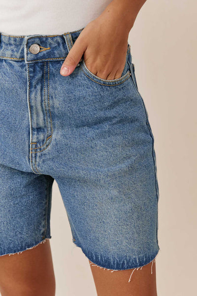 מכנסי ג'ינס קצרים גאיה בסיומת גזורה | ג'ינס כהה