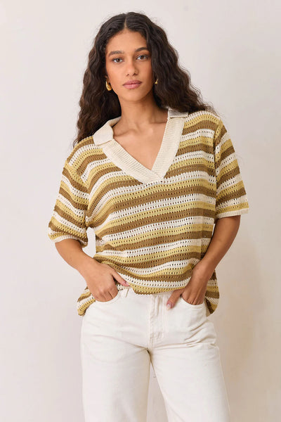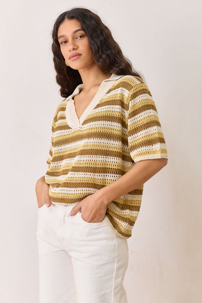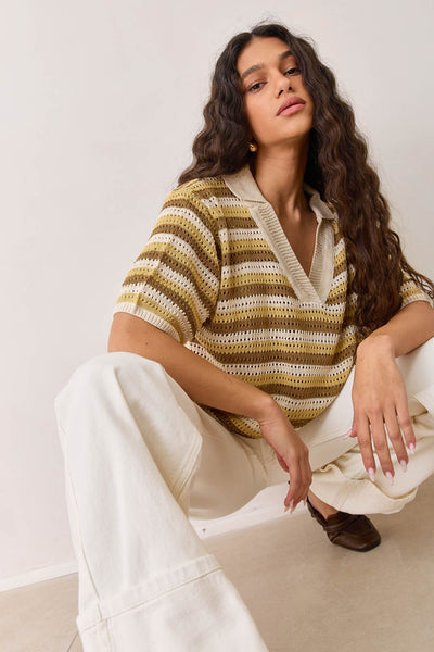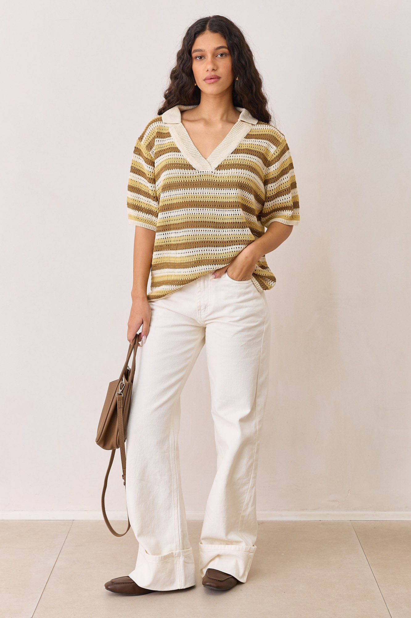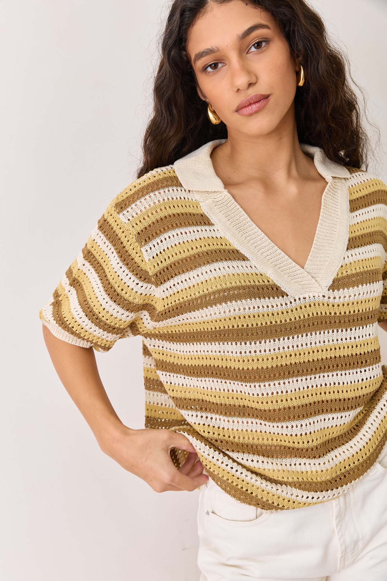 חולצת קרושה אייריס בשילוב צווארון | בז'/צהוב