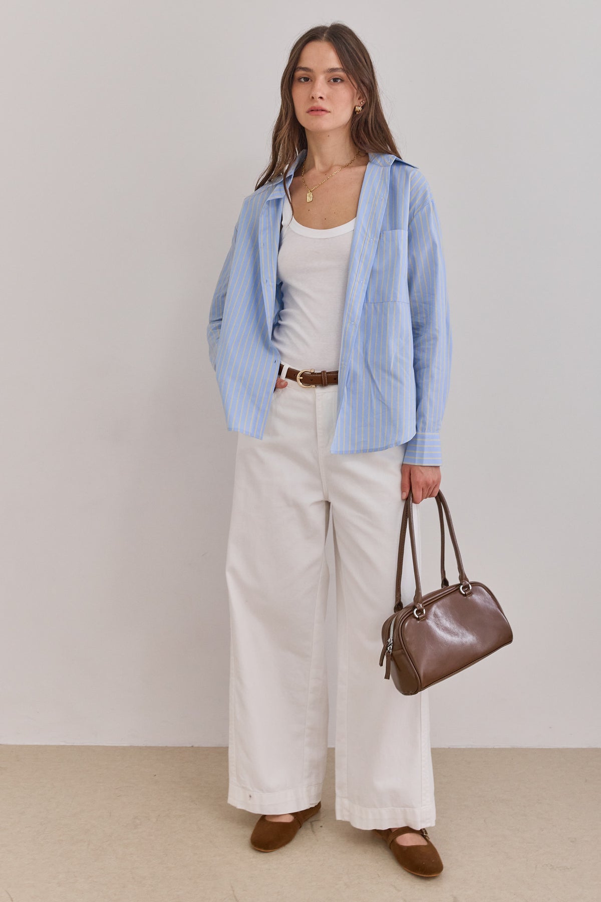 מכופתרת איוון סטרייפס | תכלת/צהוב