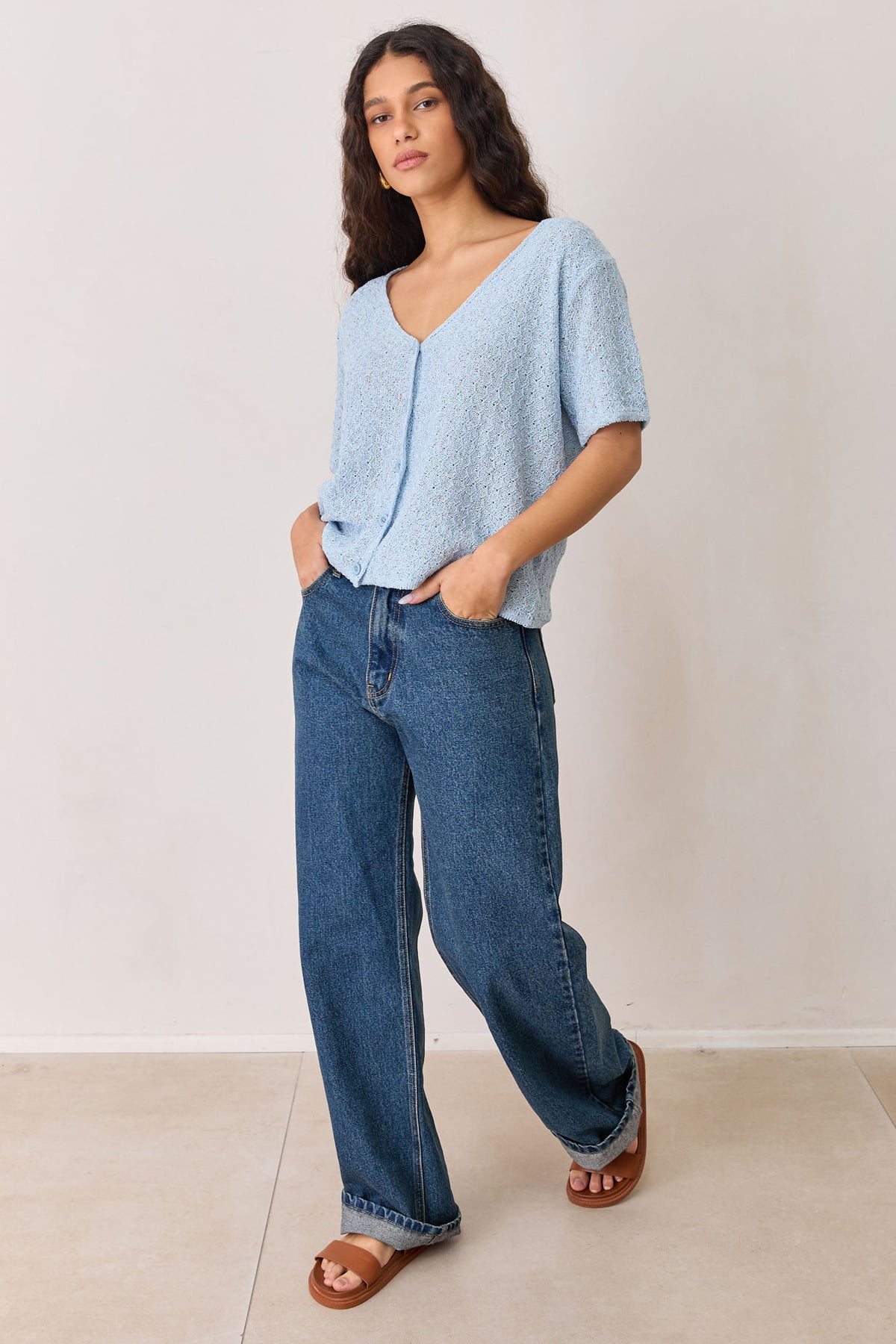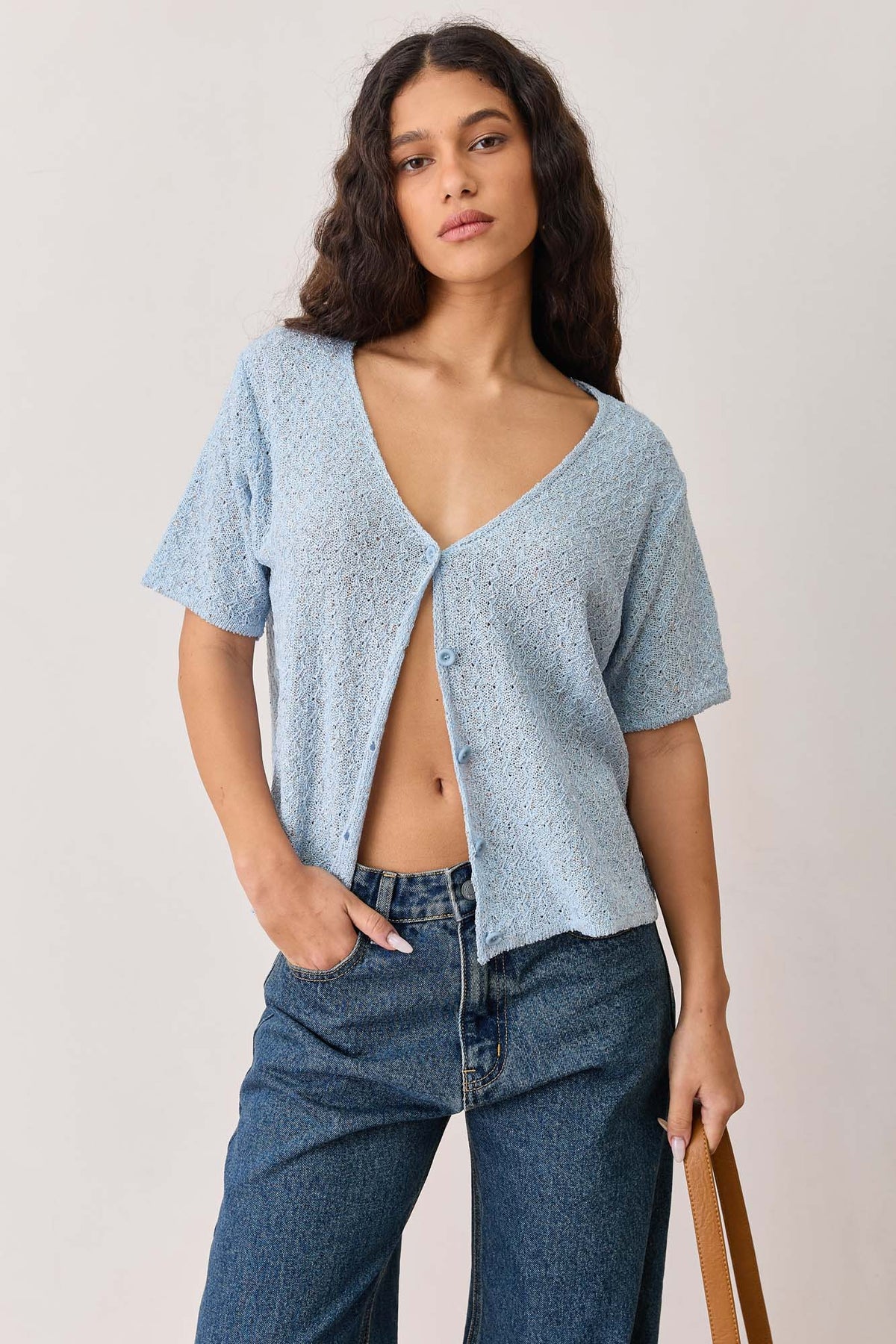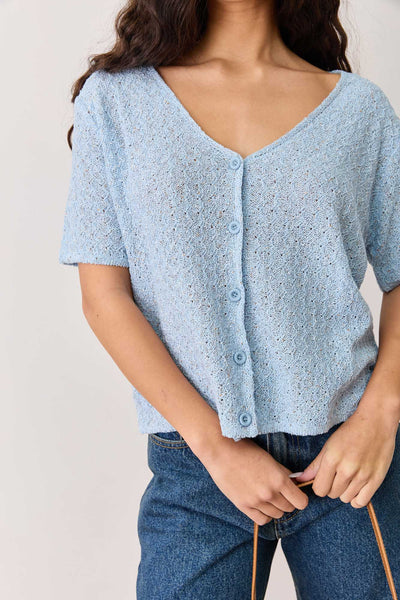 חולצת כפתורים ג'ולייט סריג דק | כחול בהיר