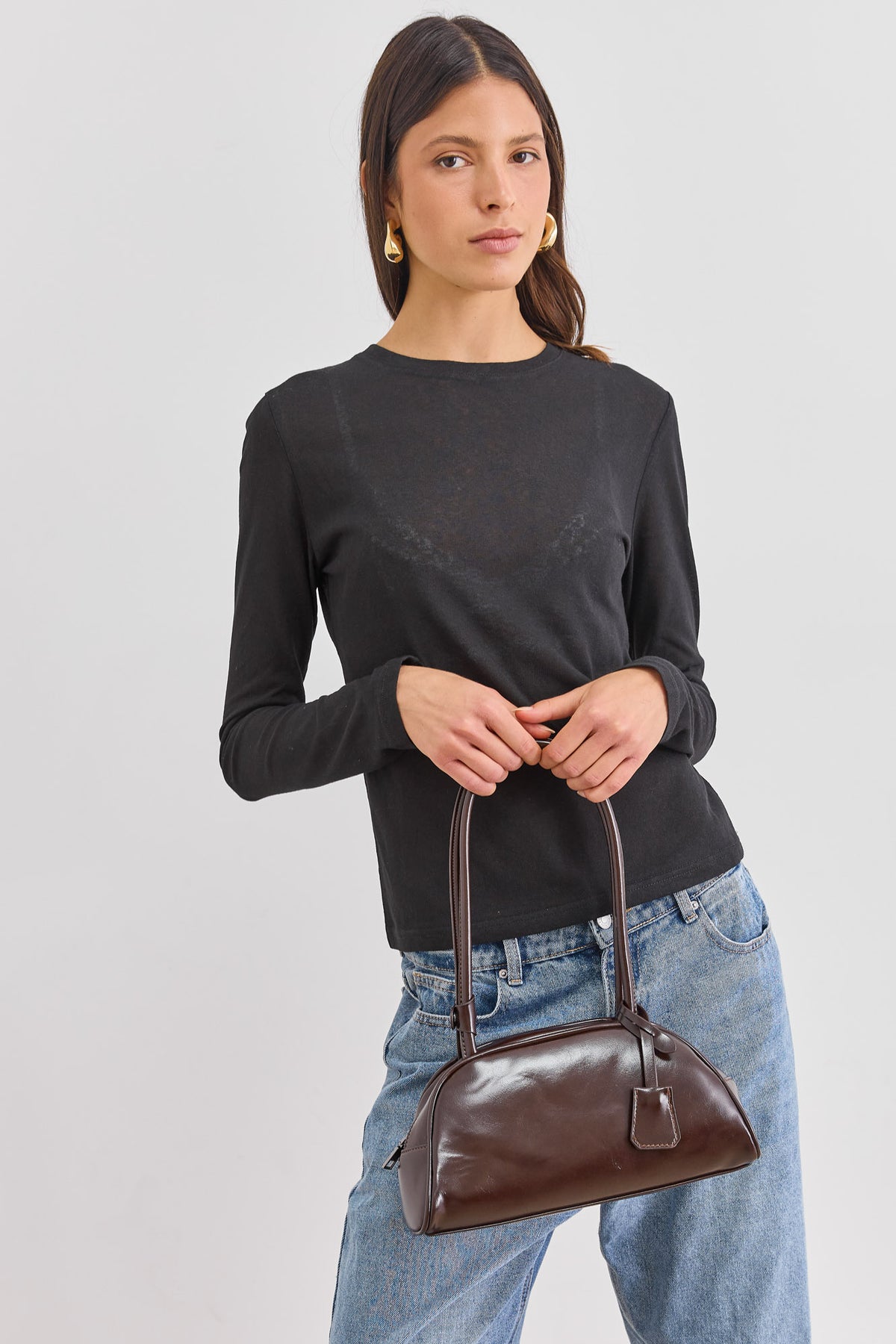 תיק כתף דמוי עור ורצועות דקות עם שני תאים מקדימה לתיק תא אחסון יחיד וסגירת רוכסן