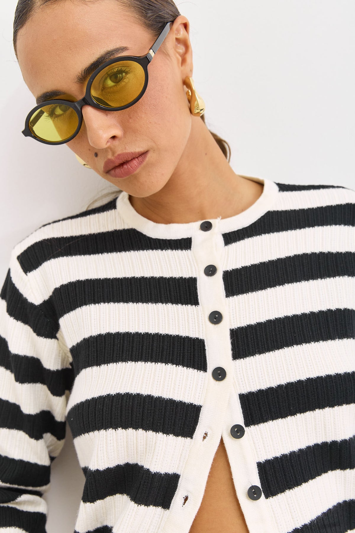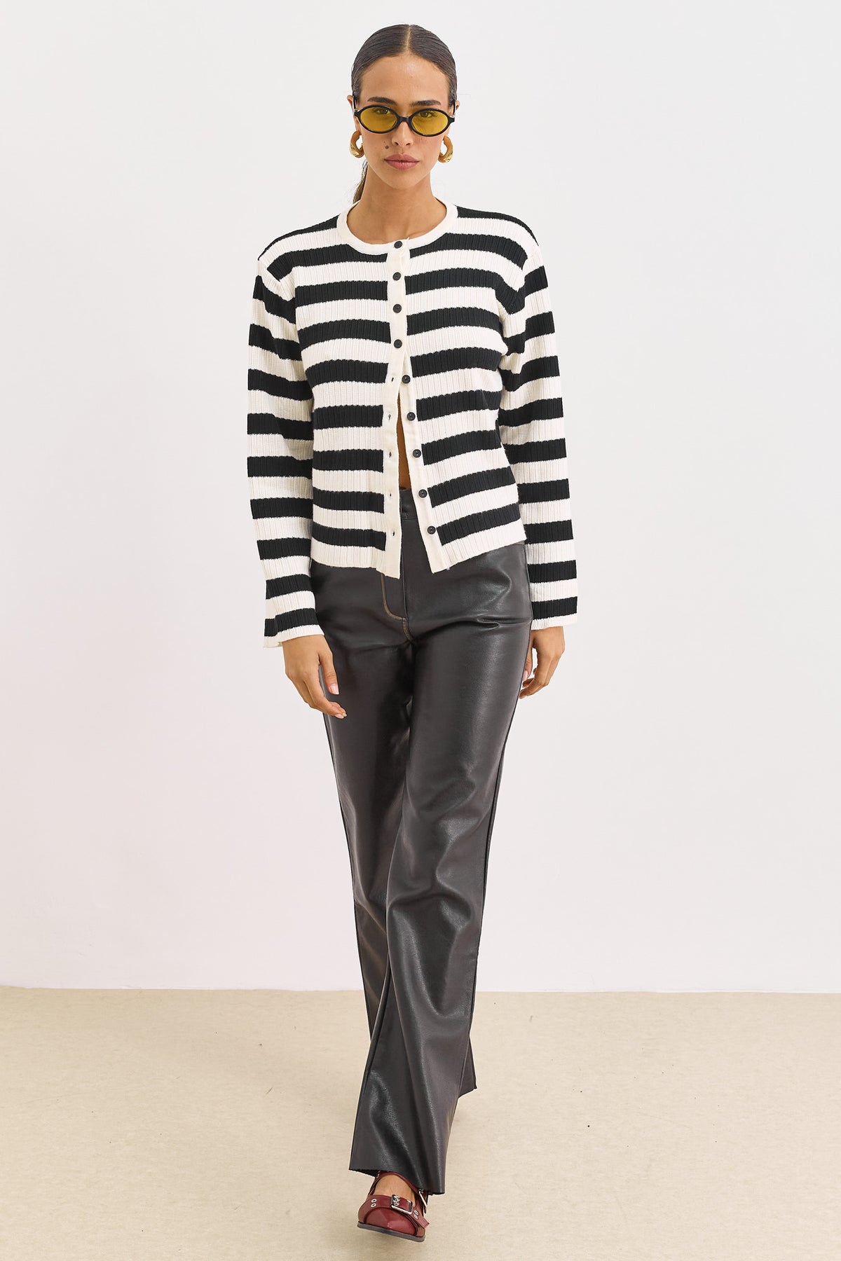 קרדיגן מבד סריג בשילוב פסים וכפתורים