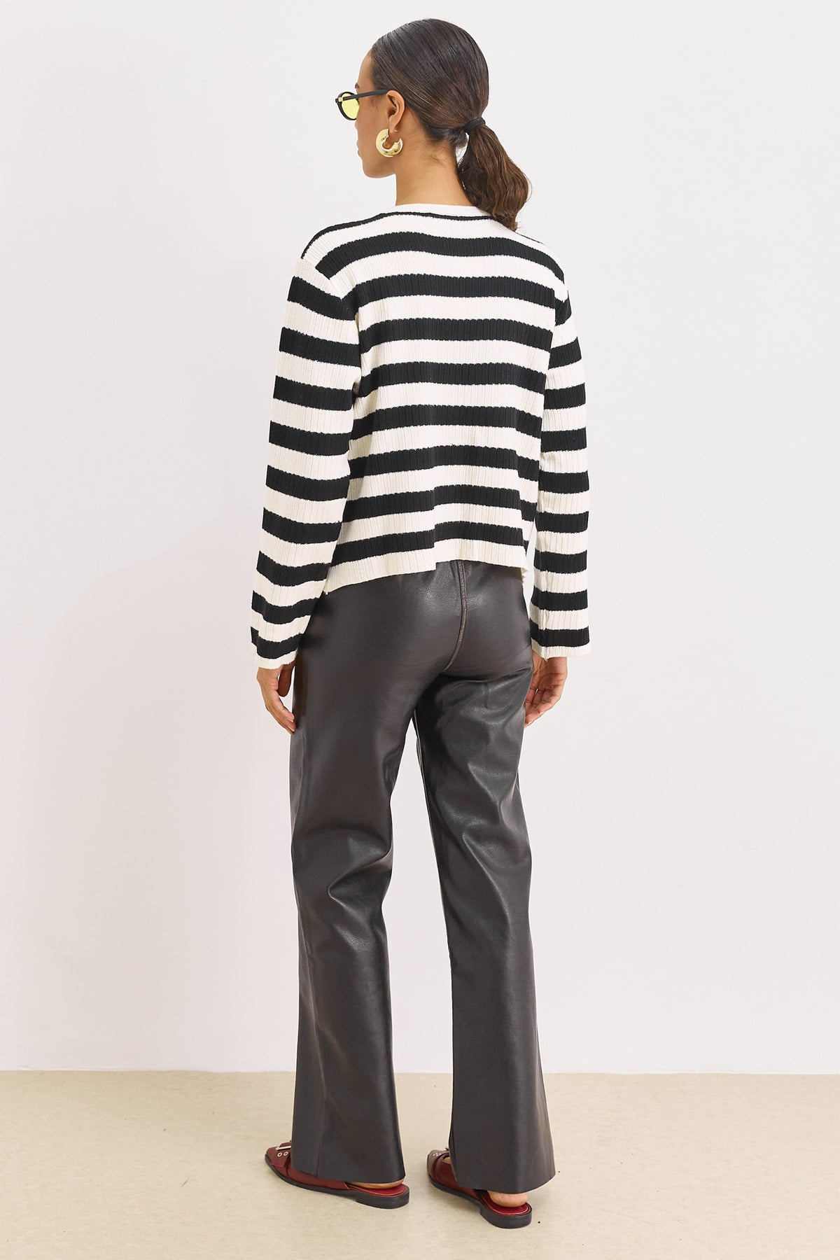 קרדיגן סריג לוסי סטרייפס | קרם/שחור