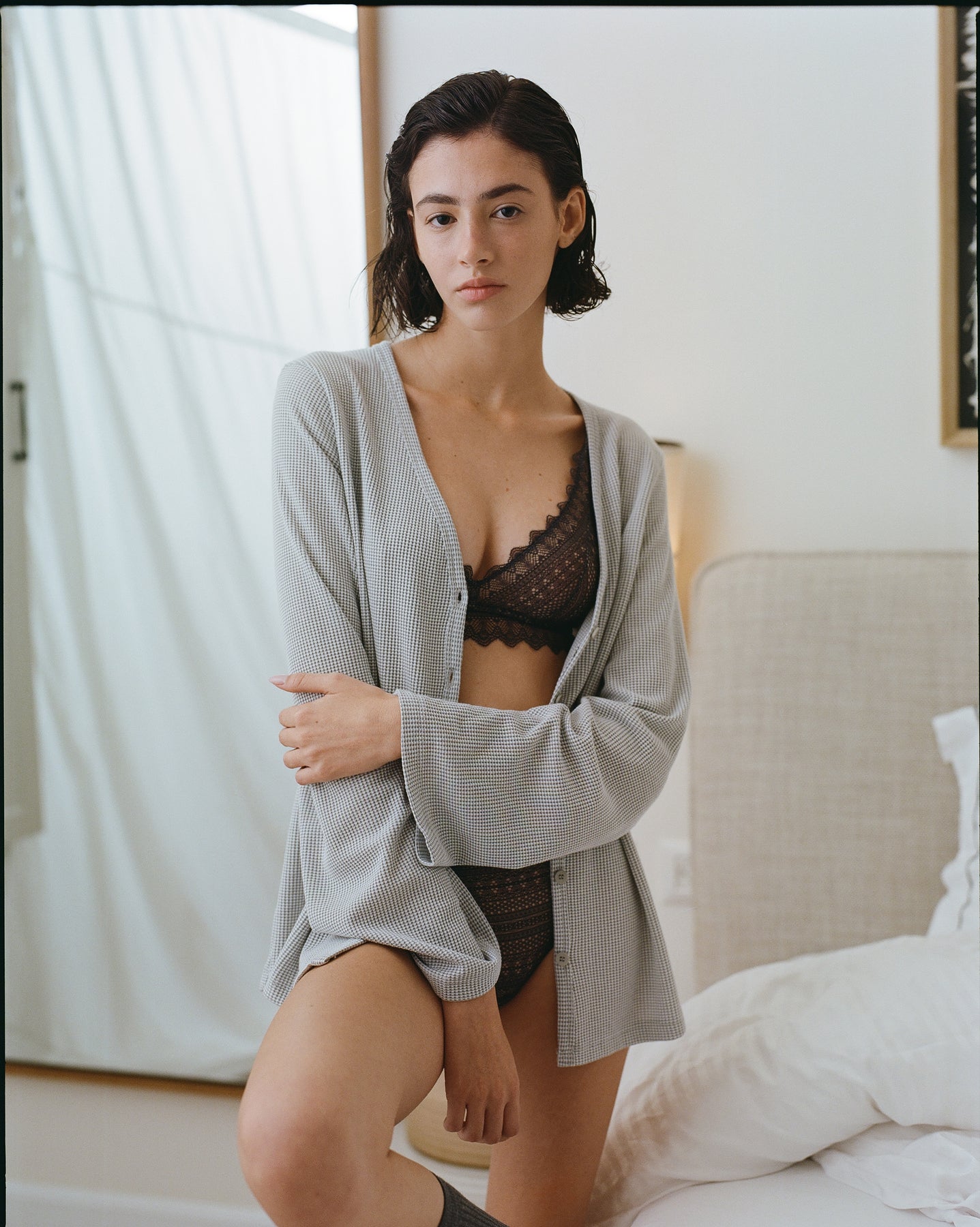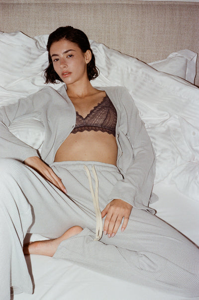 חולצת פיג'מה אוליביה כפתורים בד וופל | אפור