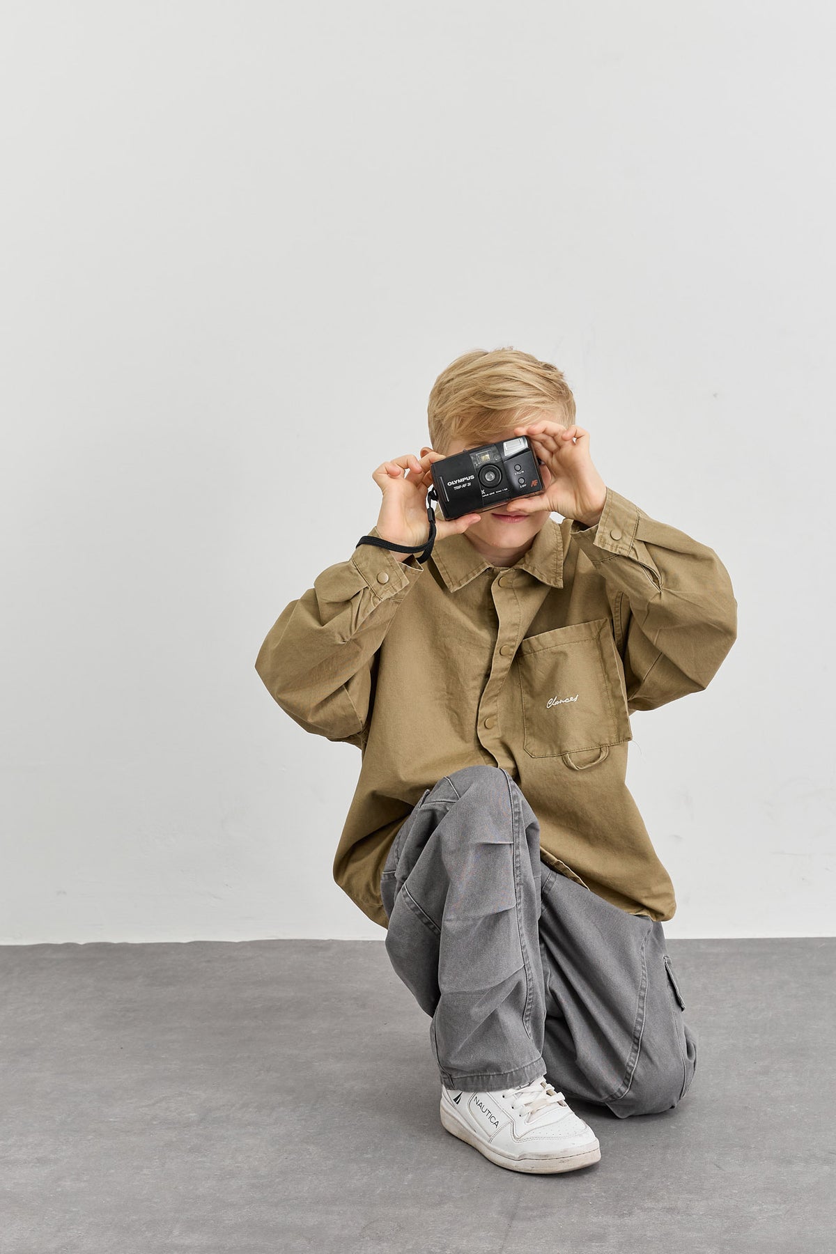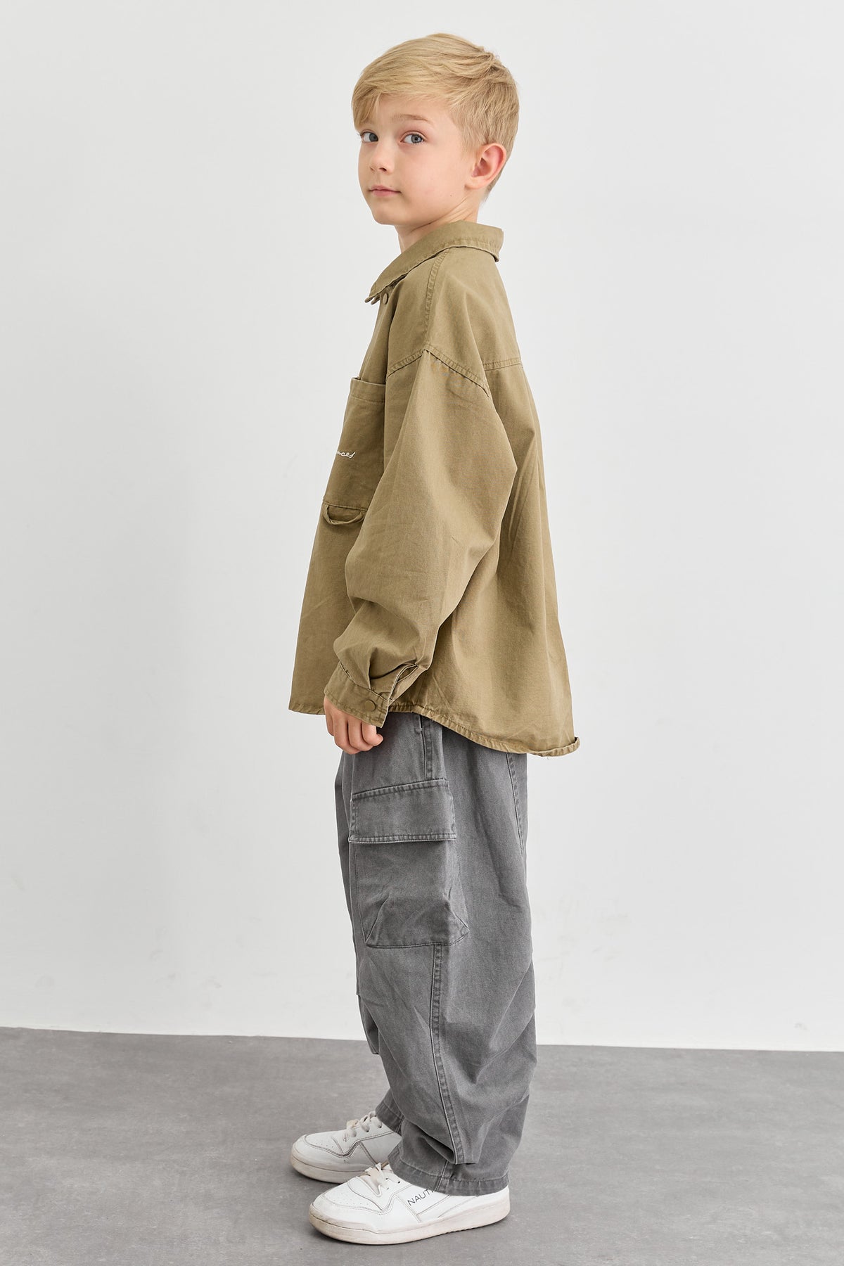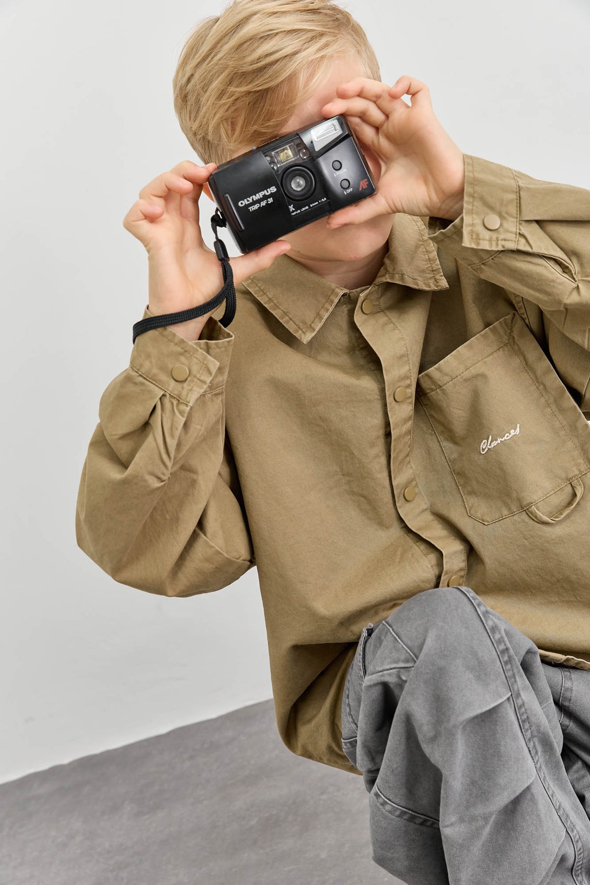 חולצת אוברסייז מכופתרת מבד כותנה עם רקמה