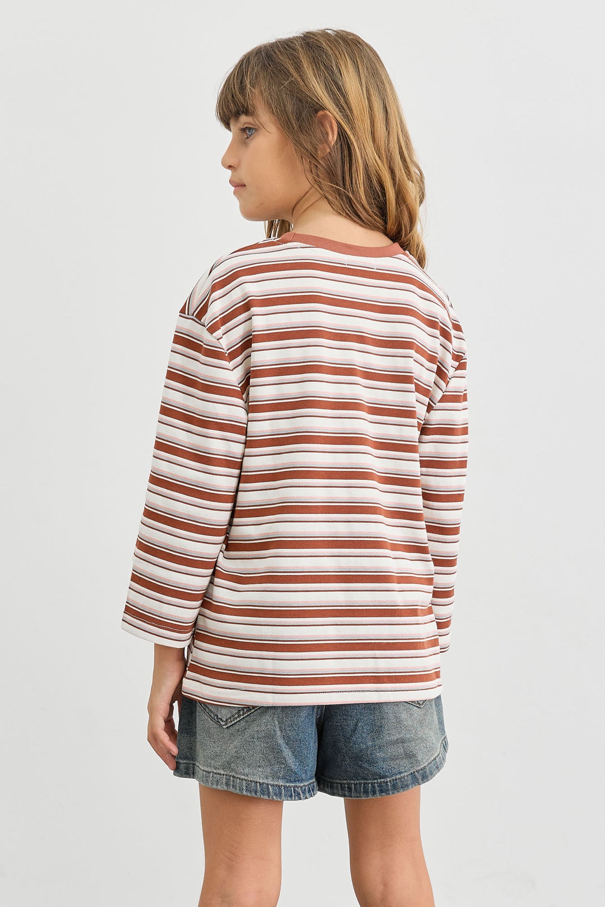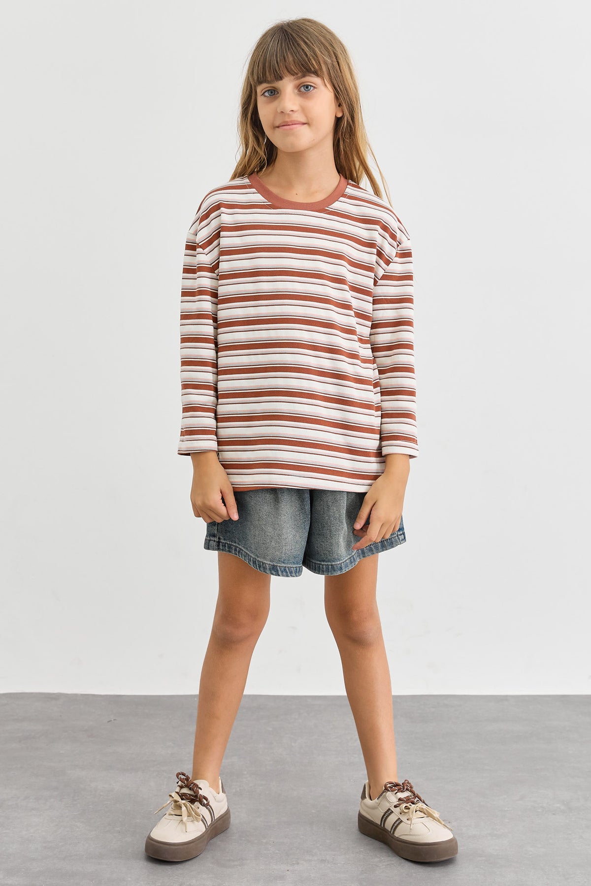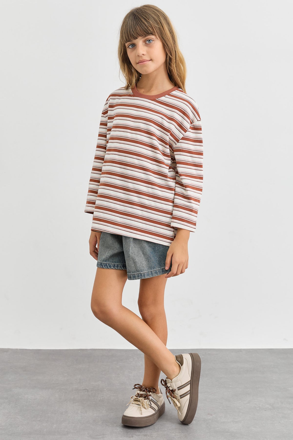 טי שירט בגזרת אוברסייז עם שרוול ארוך מבד פסים