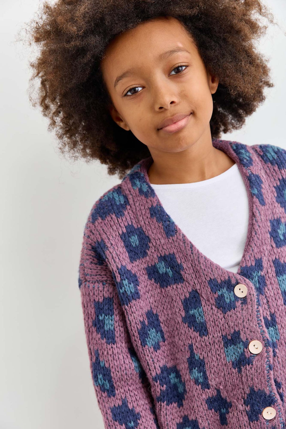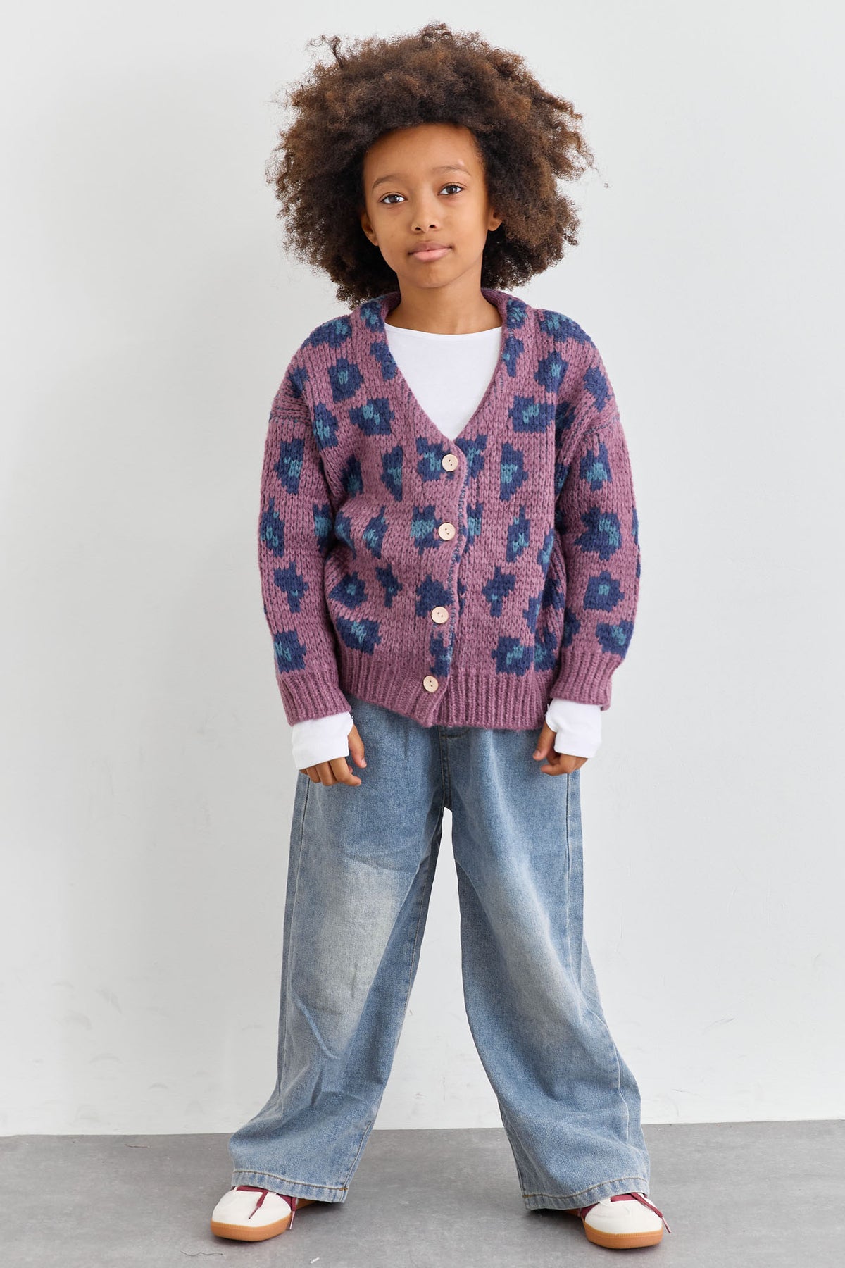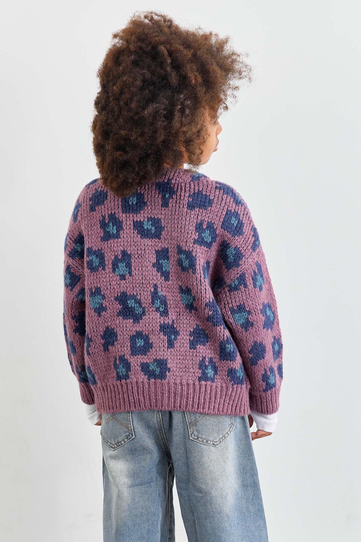 סריג מחמם מבד סריג עבה עם פרינט מנומר וסגירת כפתורים