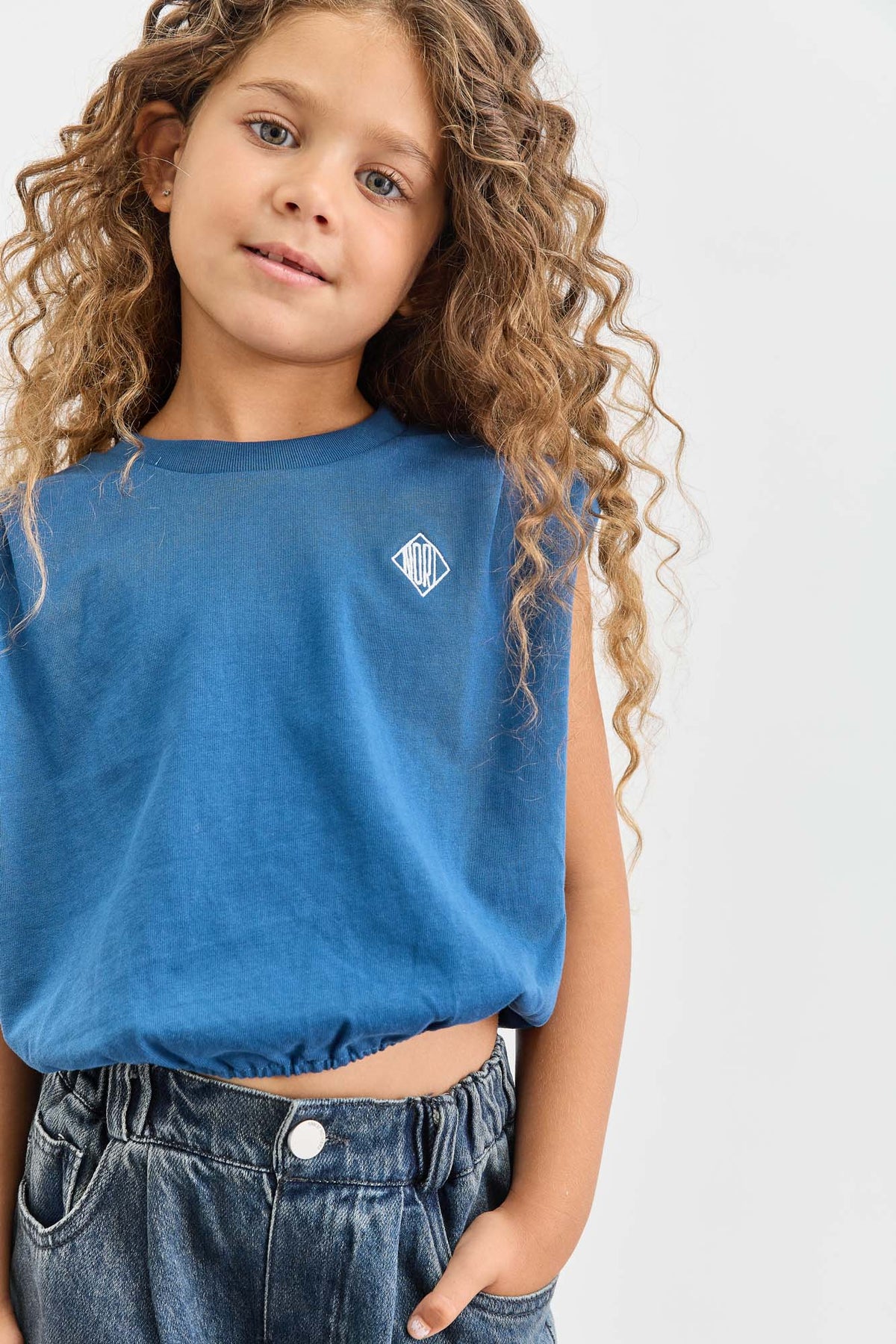 חולצה ללא שרוול בגזרת אוברסייז בשילוב כריות בכתפיים
