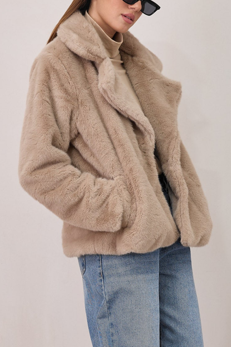 מעיל פרוותי מפנק עם צווארון וכיסים