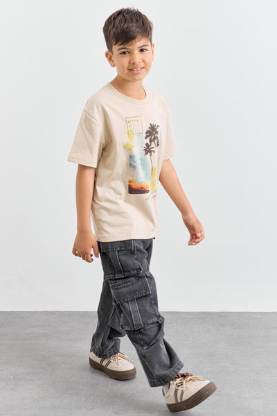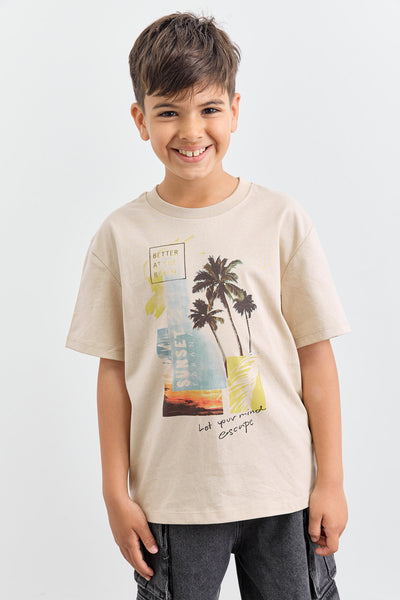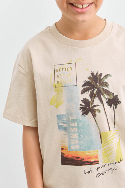 טי שירט BEACH בגזרת אוברסייז | בז'