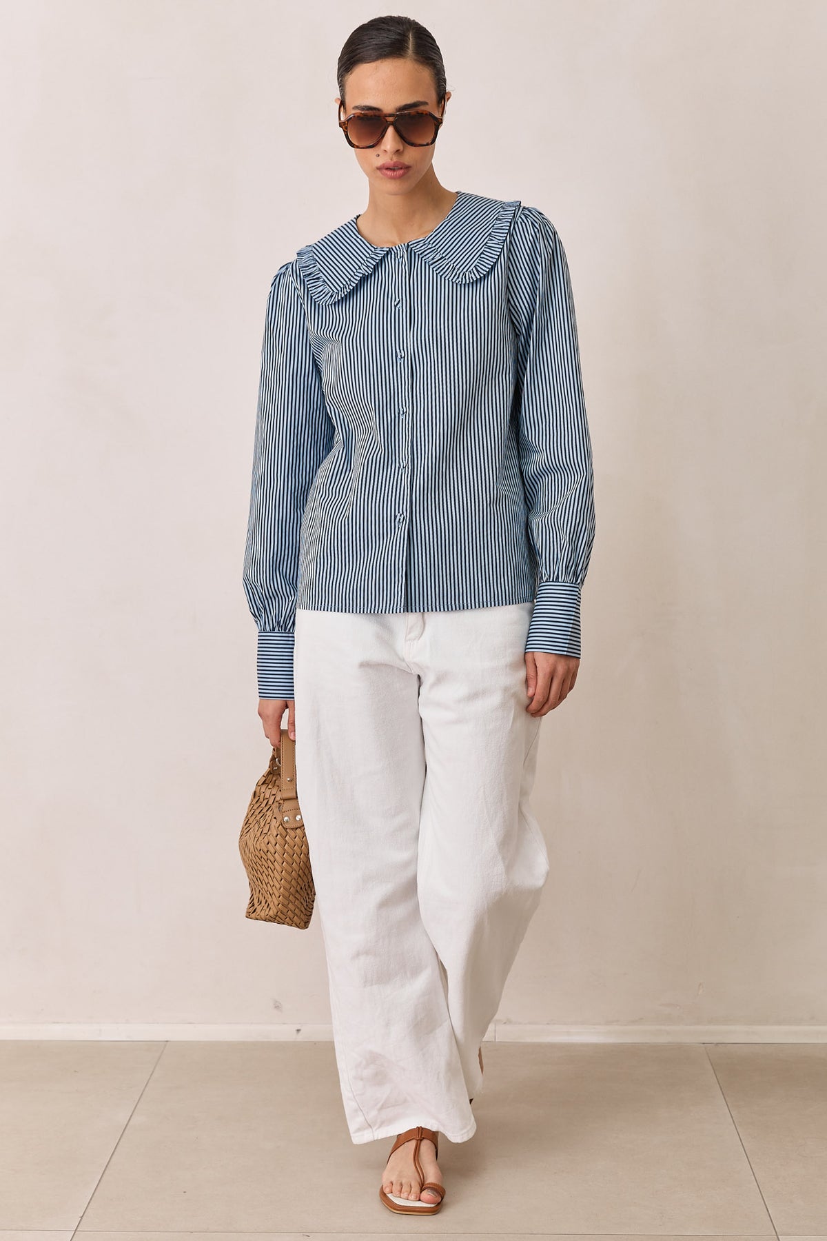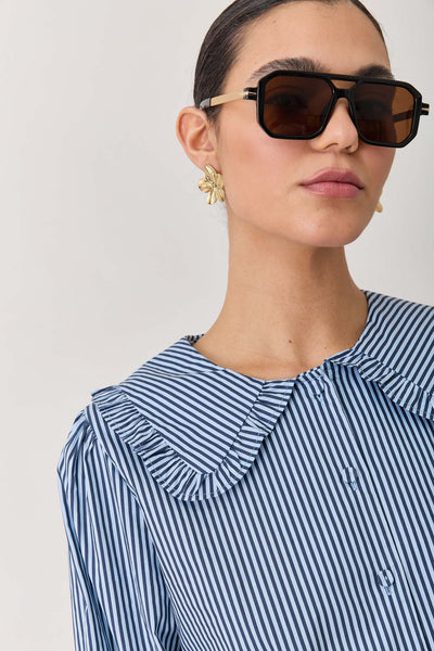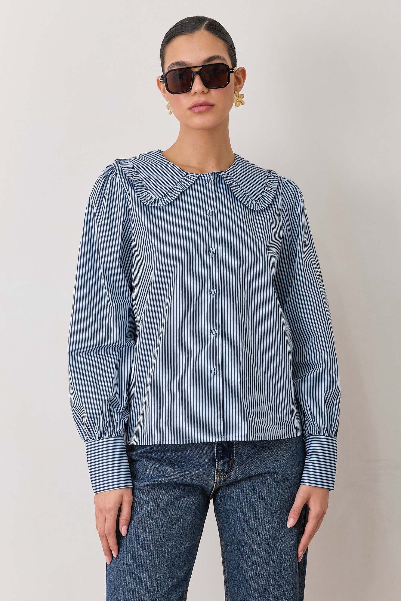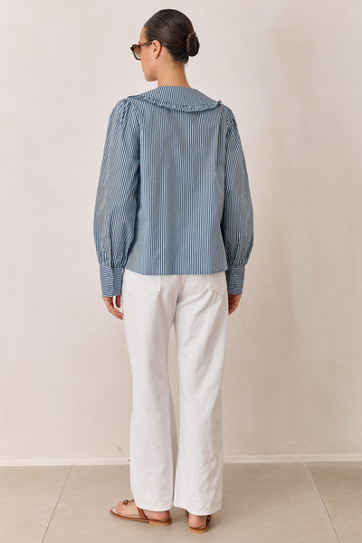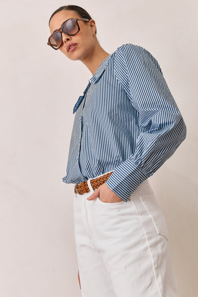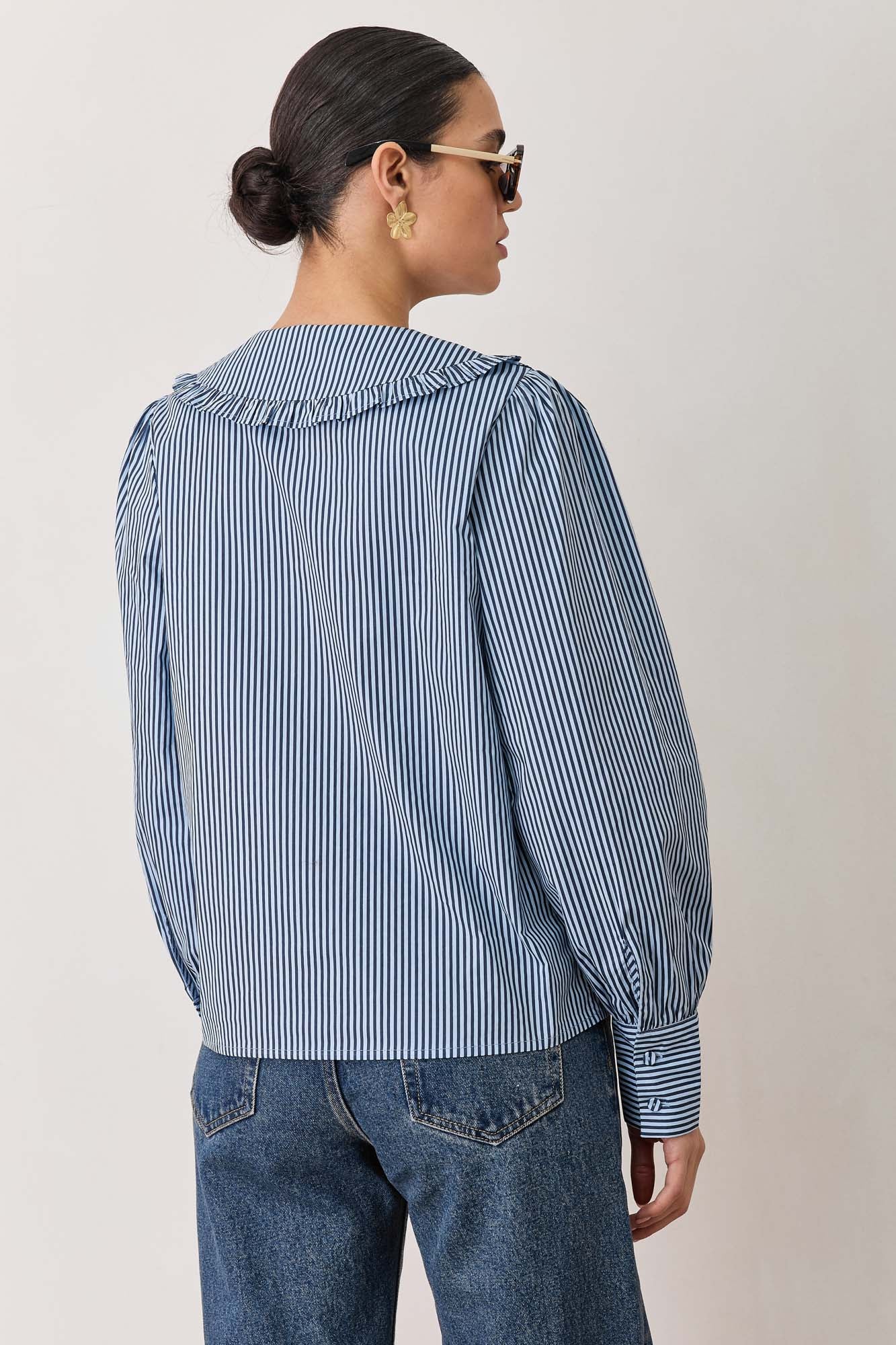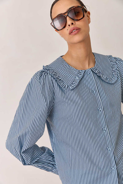 חולצת תמרה סטרייפס צווארון מלמלה | כחול