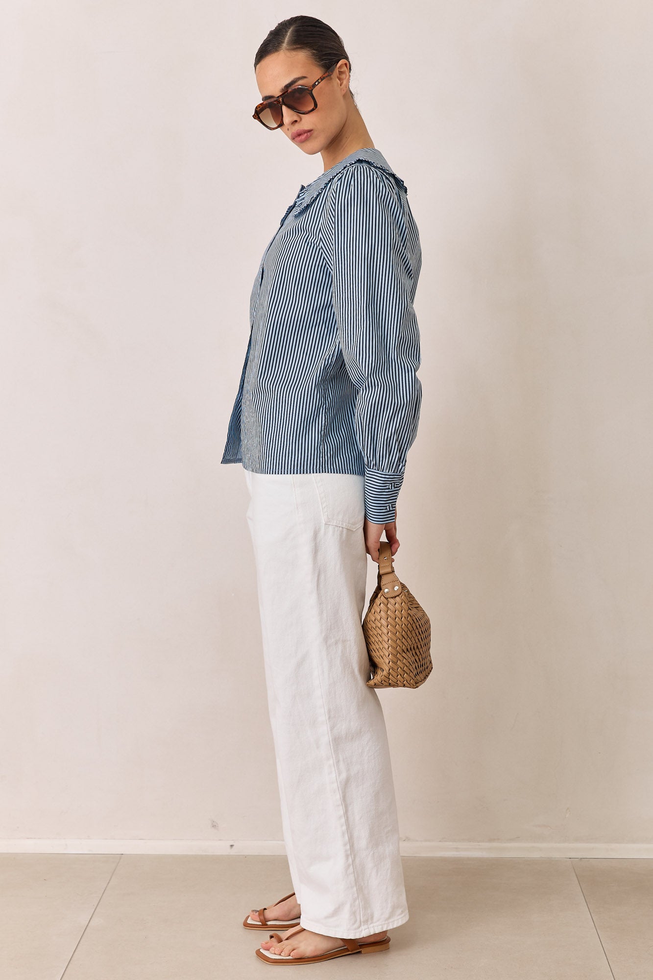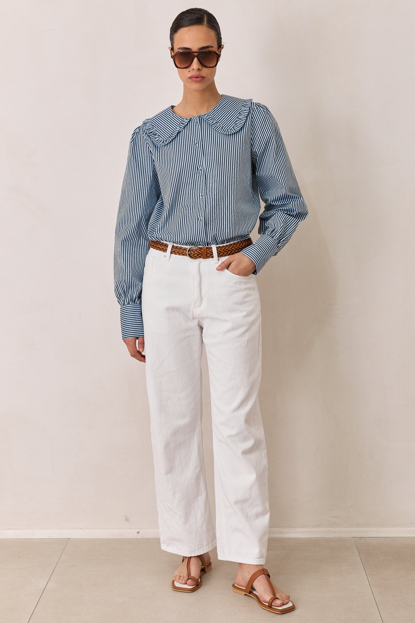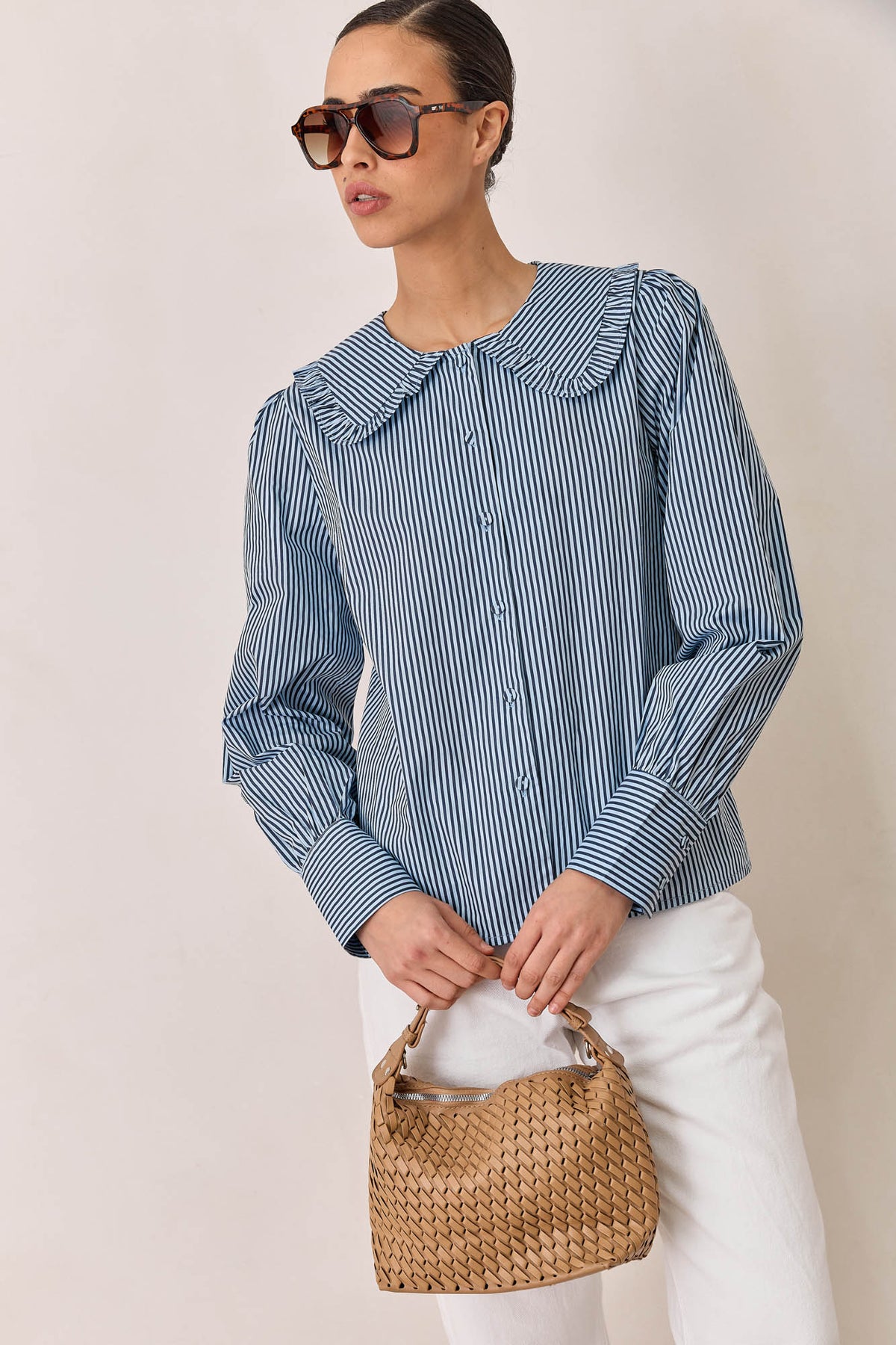 חולצת תמרה סטרייפס צווארון מלמלה | כחול