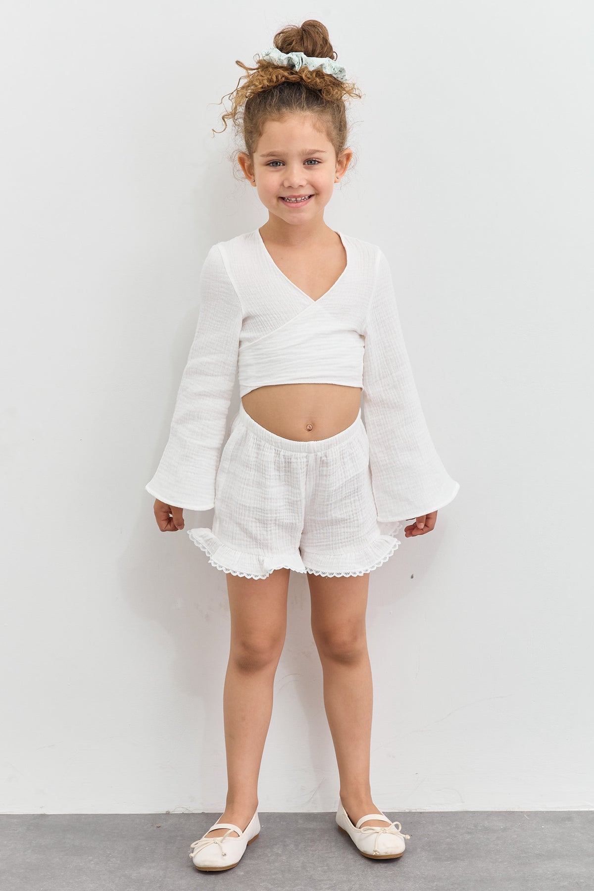 חולצה מבד טטרה בגזרת מעטפת ושרוולים מתרחבים