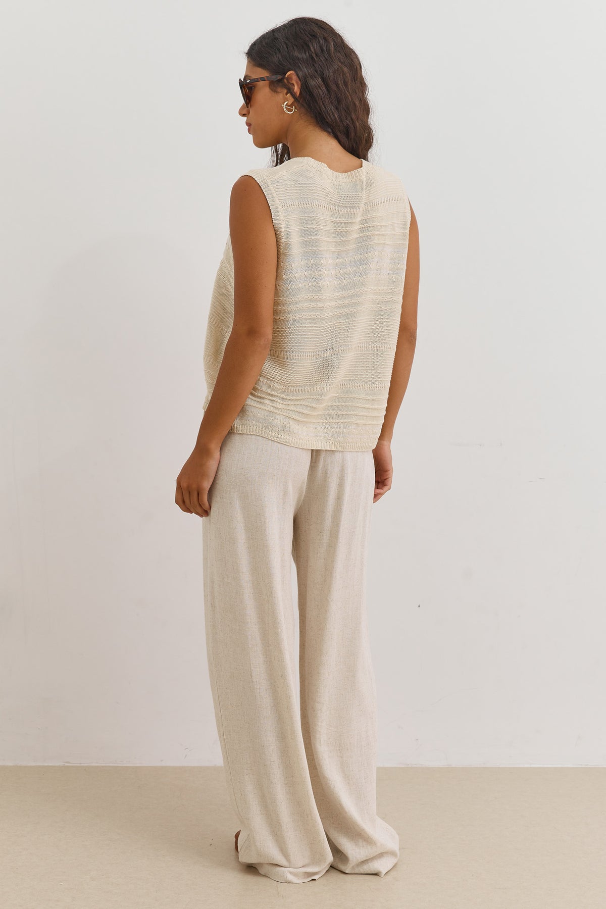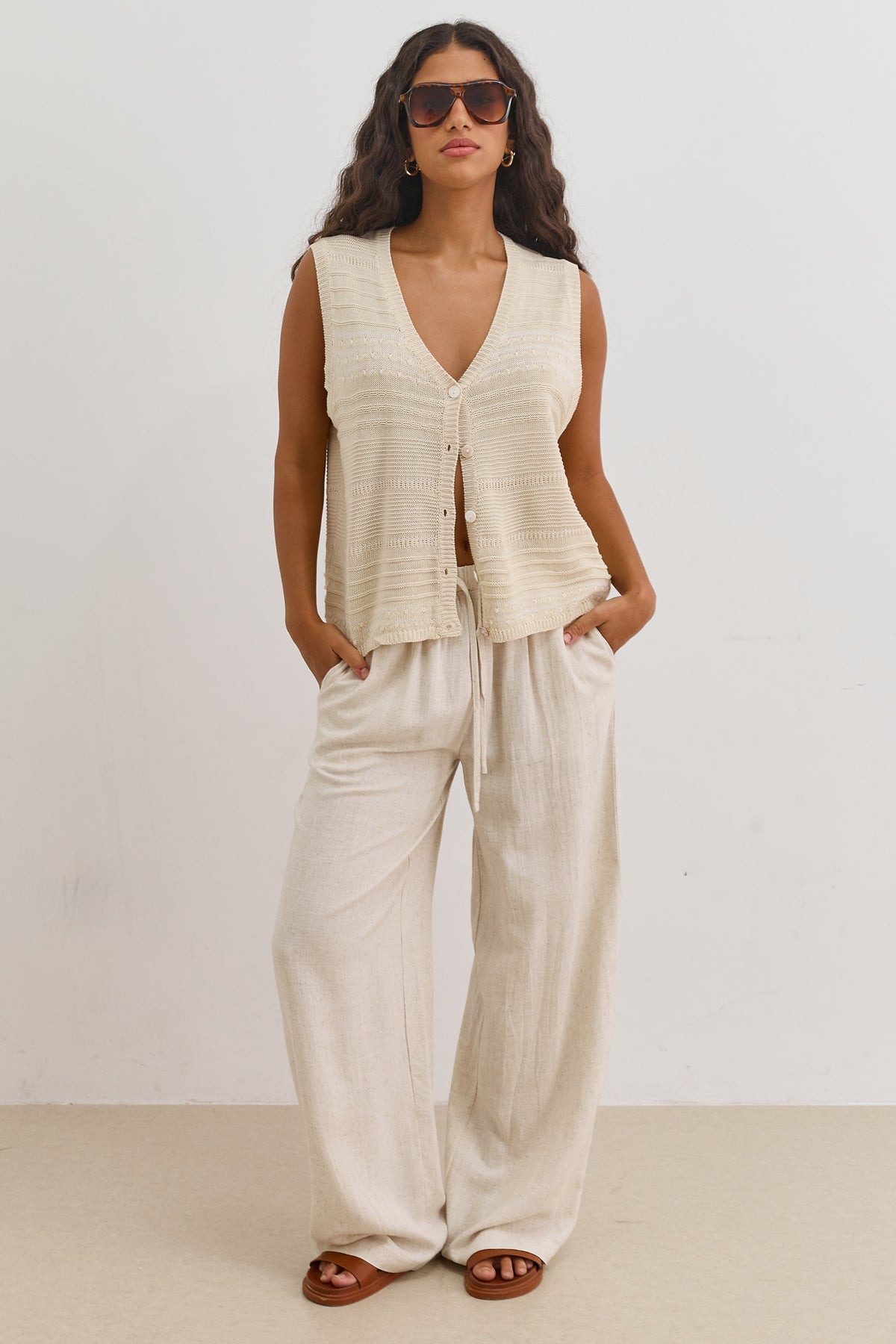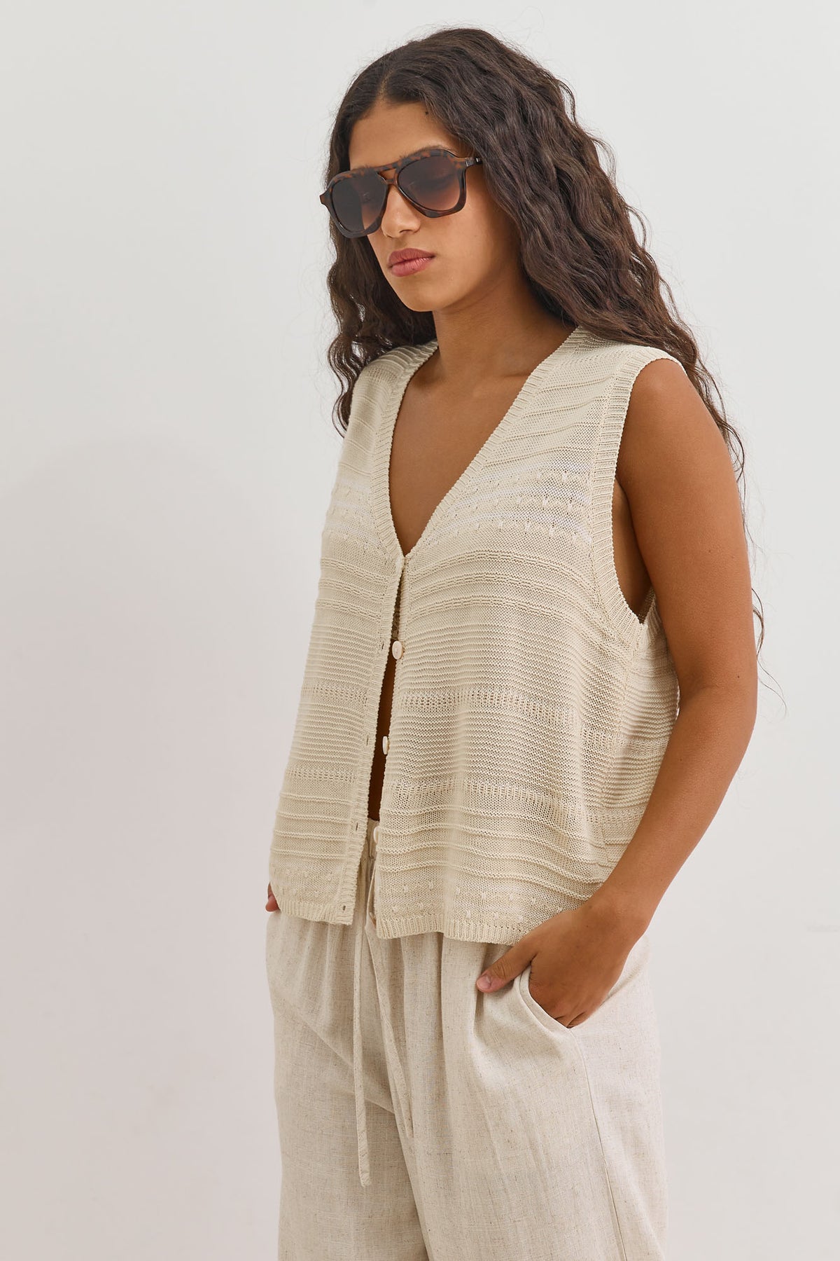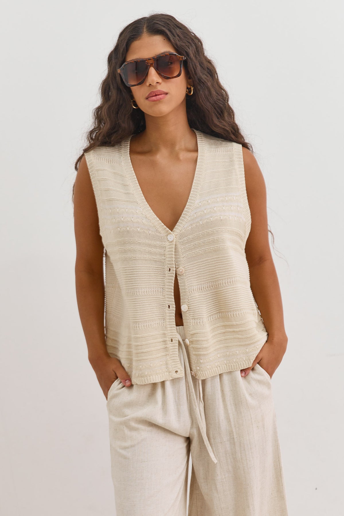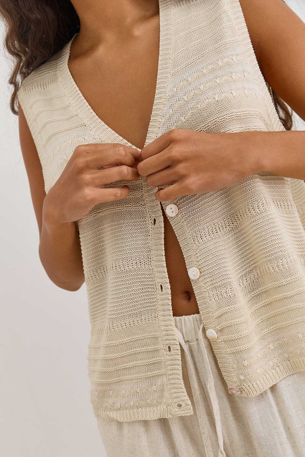 ווסט מבד סריג בגזרת אוברסייז עם טקסטורה בשילוב סגירת כפתורים